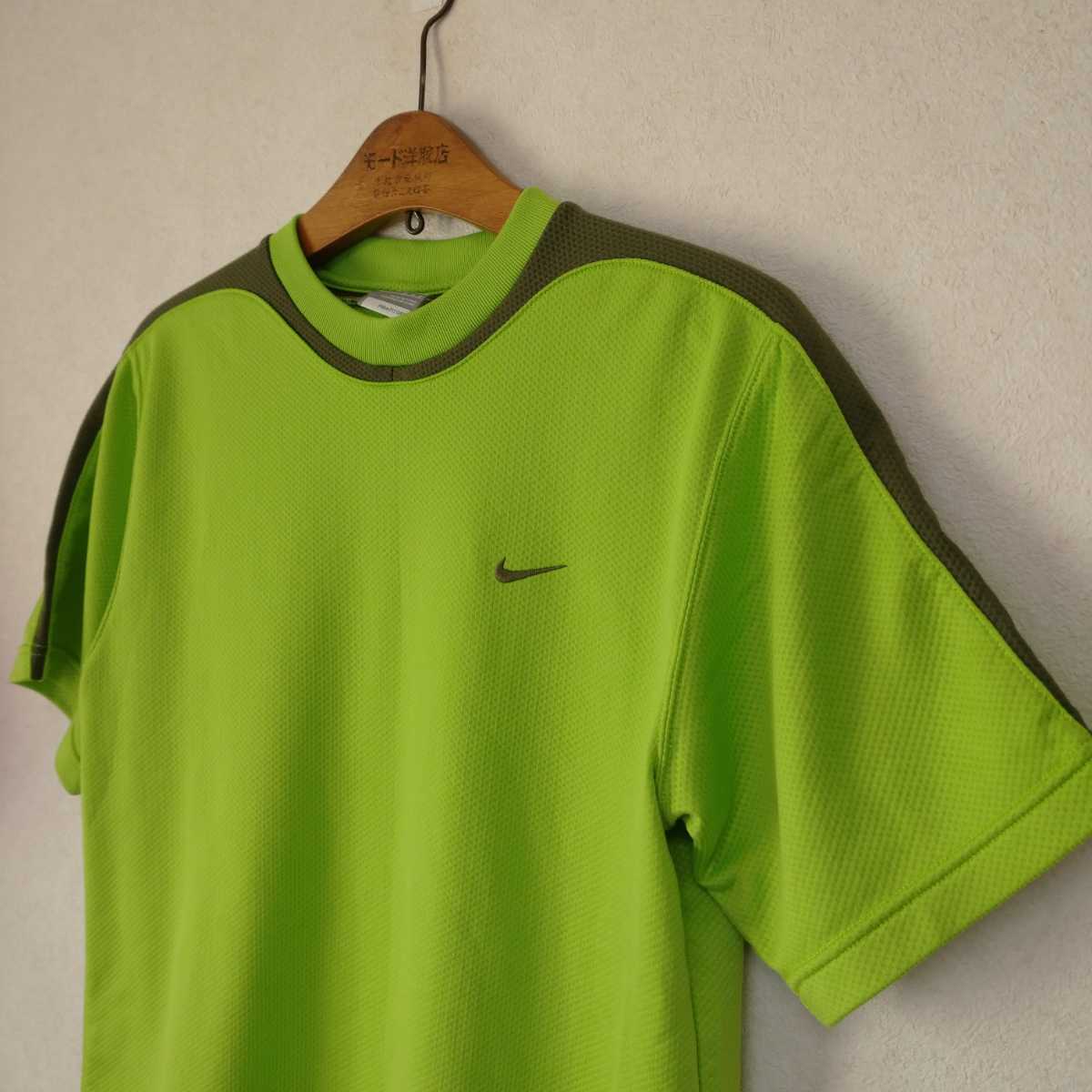 多少の誤差はお許しください。良い雰囲気です。軽いポリエステル100、黄緑DRYFIT、細かなメッシュ。できる限りダメージは説明させていただきますが、こちらが気づかない程度のわずかなしみ、よごれ、