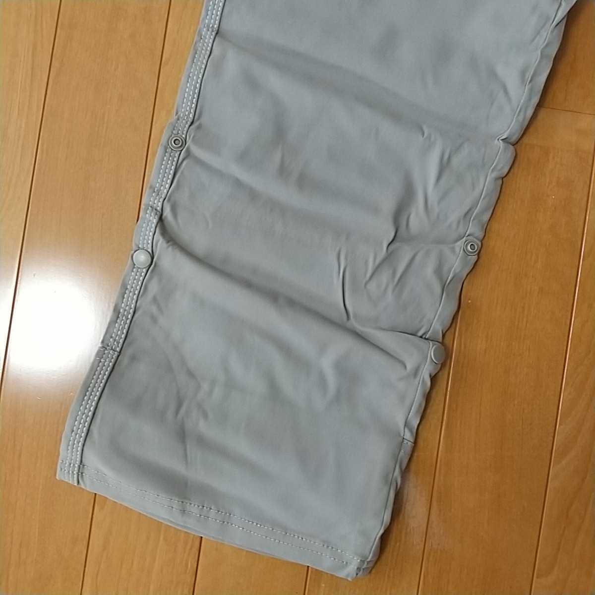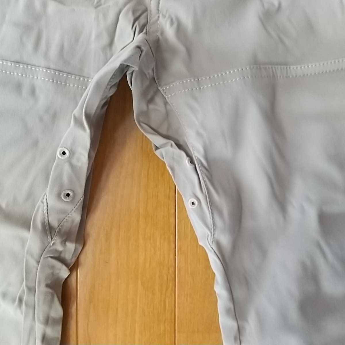 裾にロールアップ用スナップが付いており、レングスのアレンジができるうえ、通気性もアップ。