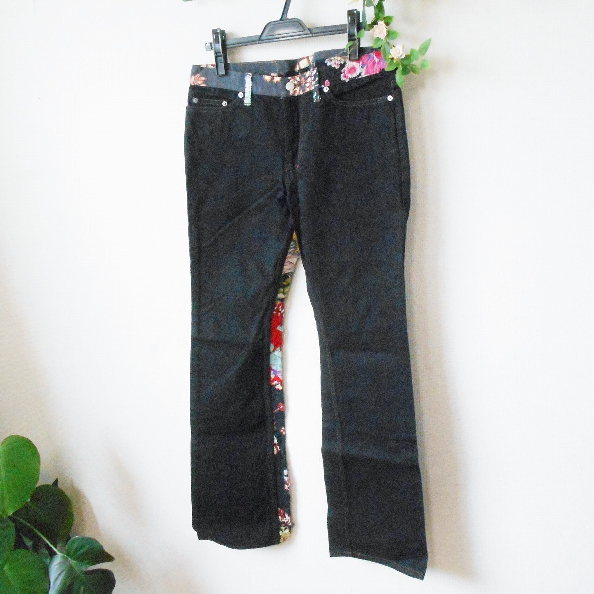 【ポイント】グラムディの和柄切替パンツになります。お色は黒デニムベースで切替部分は多種類の和柄生地がツギハギされた、凝ったデザインで、グラムディらしいお洒落でカッコイイ一着です。
