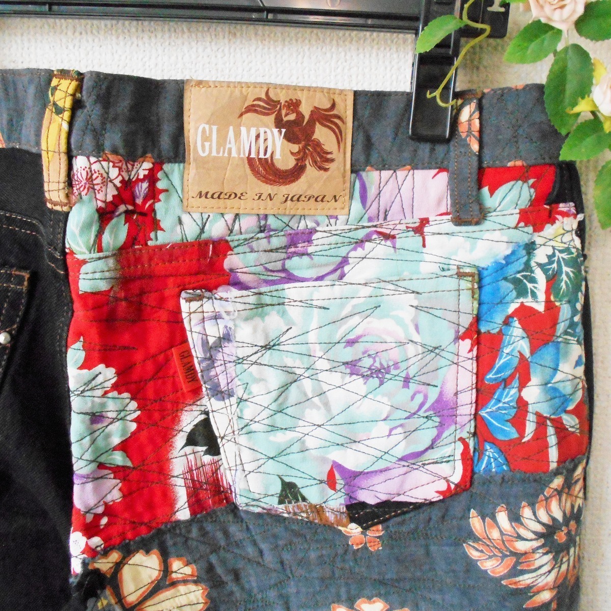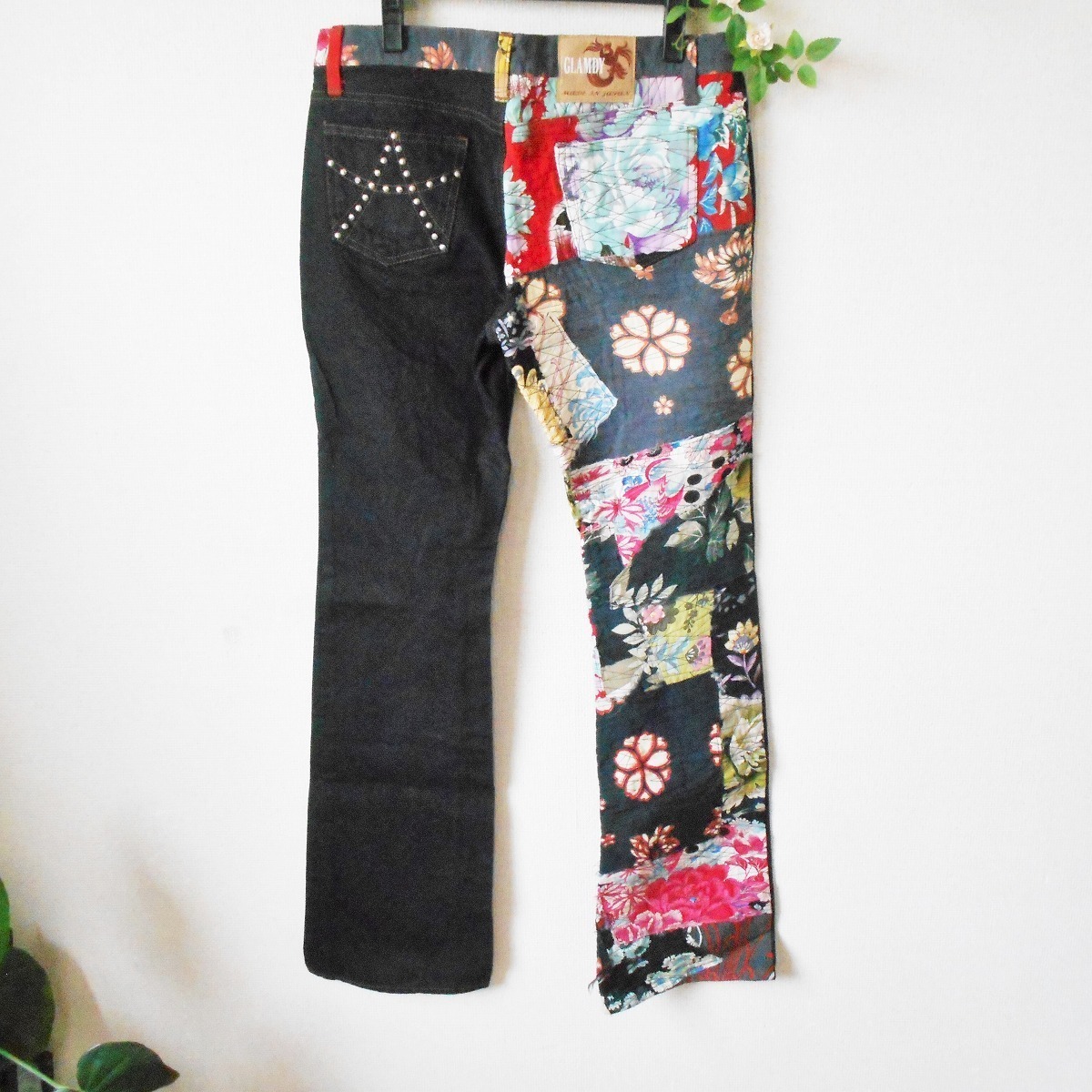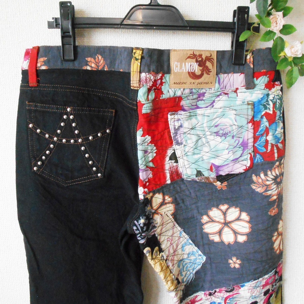 男女兼用 グラムディ GLAMDY ツギハギ 和柄 × デニム 切替 パンツ 日本製 3
