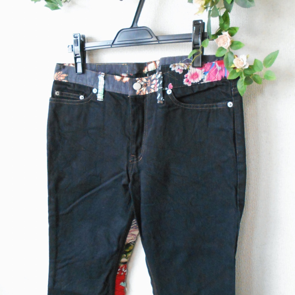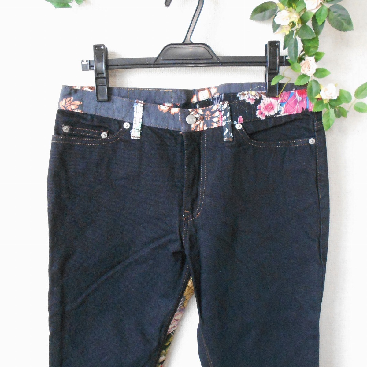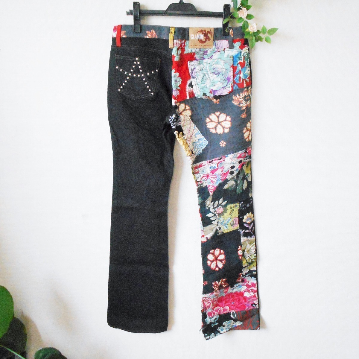 男女兼用 グラムディ GLAMDY ツギハギ 和柄 × デニム 切替 パンツ 日本製 3