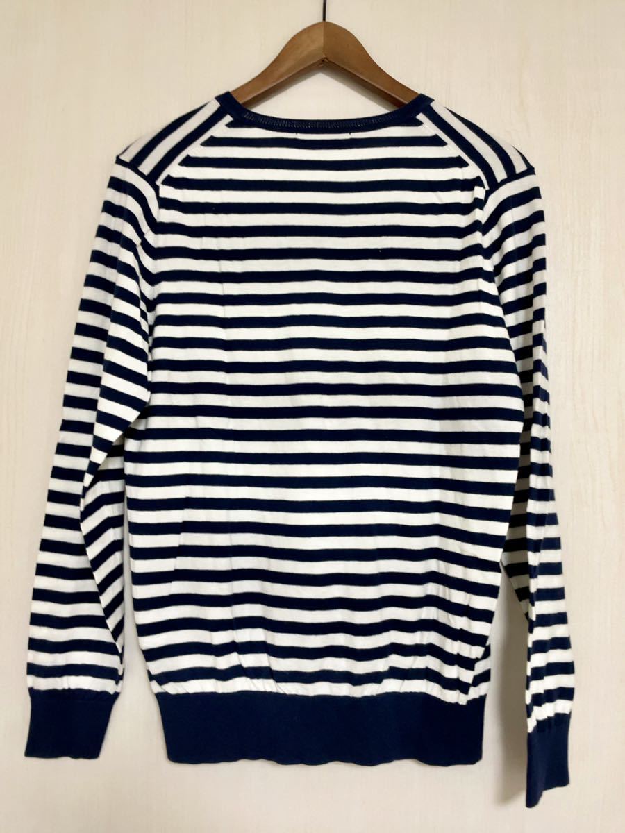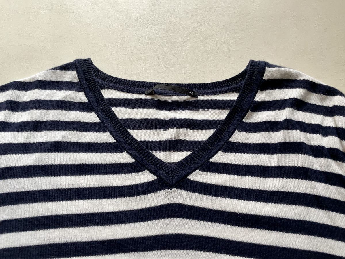 【良品・送料無料】UNIQLO(ユニクロ)メンズVネックボーダーセーター_Mサイズ|検GAP、ZARA、しまむら、ブイネック