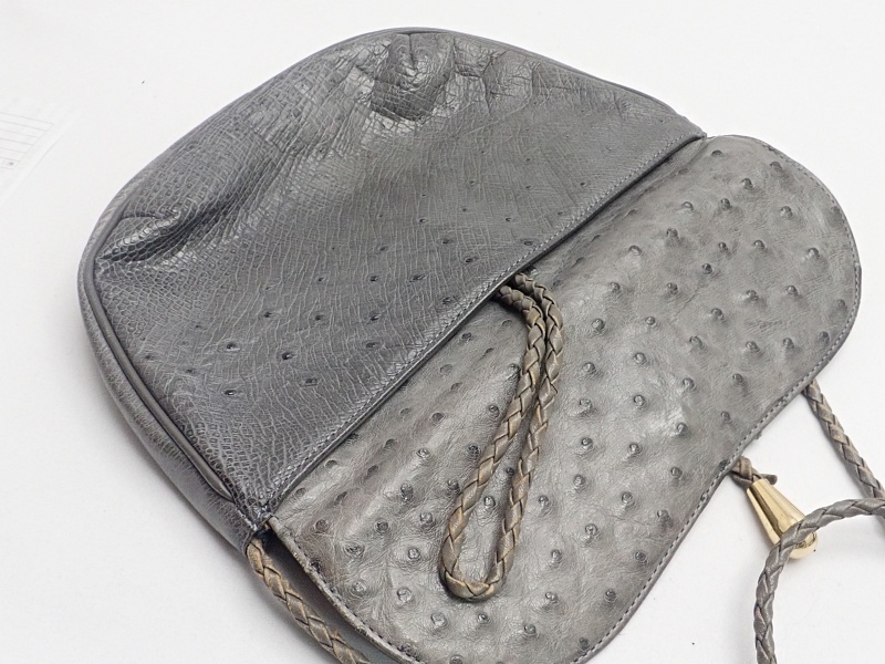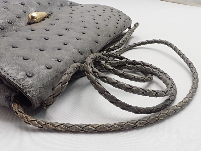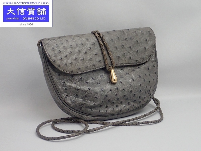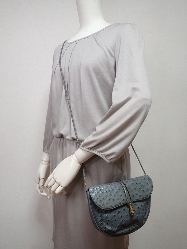 商品名 | オーストリッチ レザー ショルダー ポーチ グレー 中古B- 【送料無料】 | ||||||||||||||||
