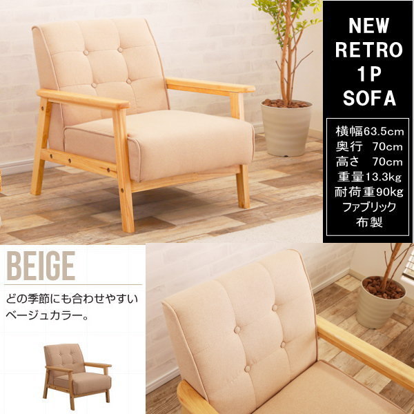 | タイトル | 送料無料 懐かしい昭和の雰囲気 肌さわり抜群ファブリック 1人掛ソファ RETRO BG ベージュ |