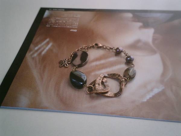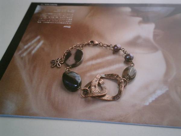ガールズ・ファッションシリーズです♪密やかに華やかに・・シックなブロンズゴールドの淡水パールのブレスレットです♪ブロンズゴールドの8ミリのポテトの淡水パールにキュートな豹柄のオーバルのシェルビーズやデザインリングや18×13ミリのオニキスやスモーキークォーツのオーバルを合わせて密やかに華やかにロマンチックしています♪長さは全長23センチ位で調節自由です♪お揃いのネックレスも出品しています♪シンプルで長く着けていただけるデザインを考えて作りました♪ハンドメイドをご理解頂いてノークレーム、ノーリターンでお願いします