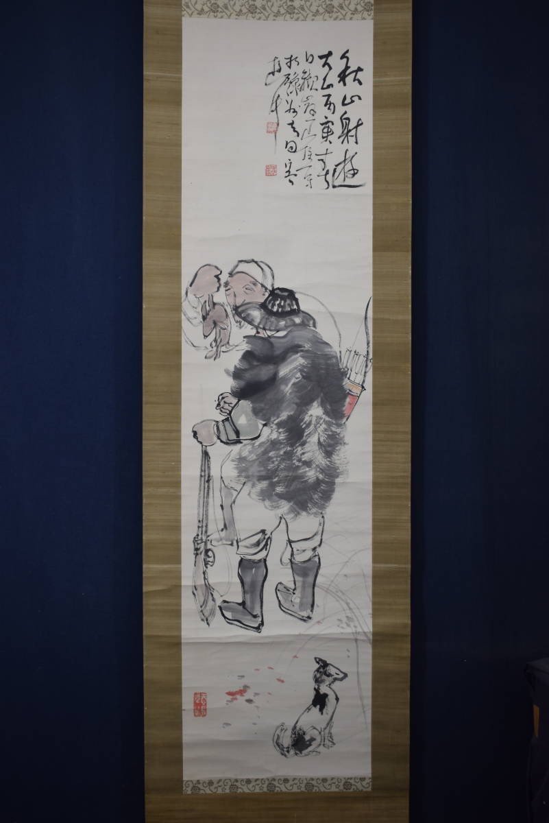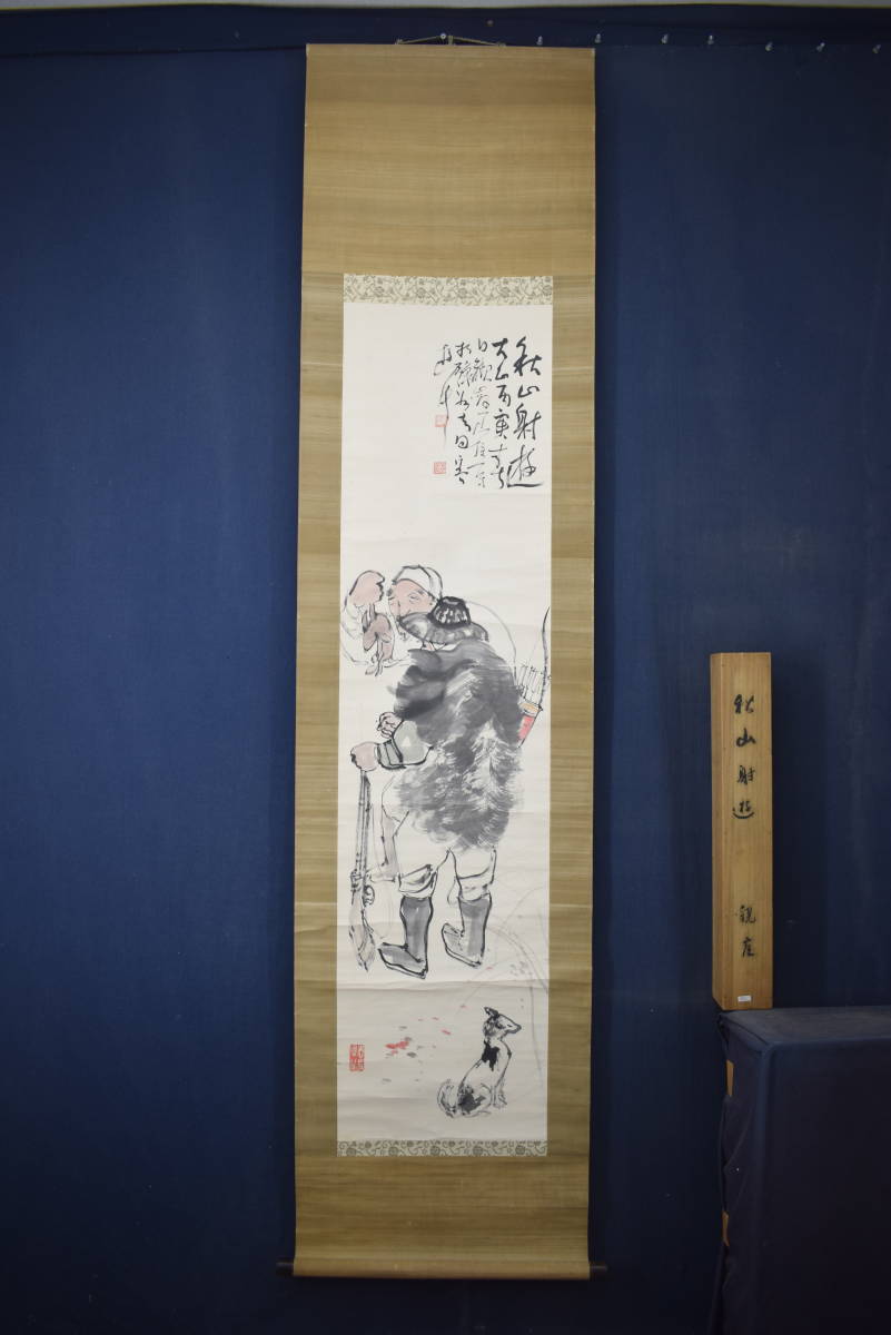 真作/高倉観崖/秋山射遊画賛/人物図/掛軸☆宝船☆Z-265