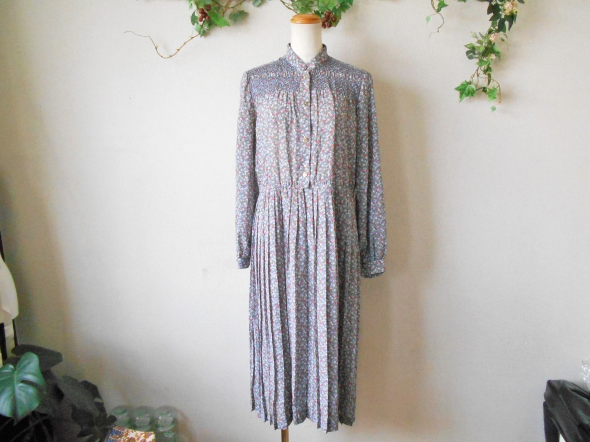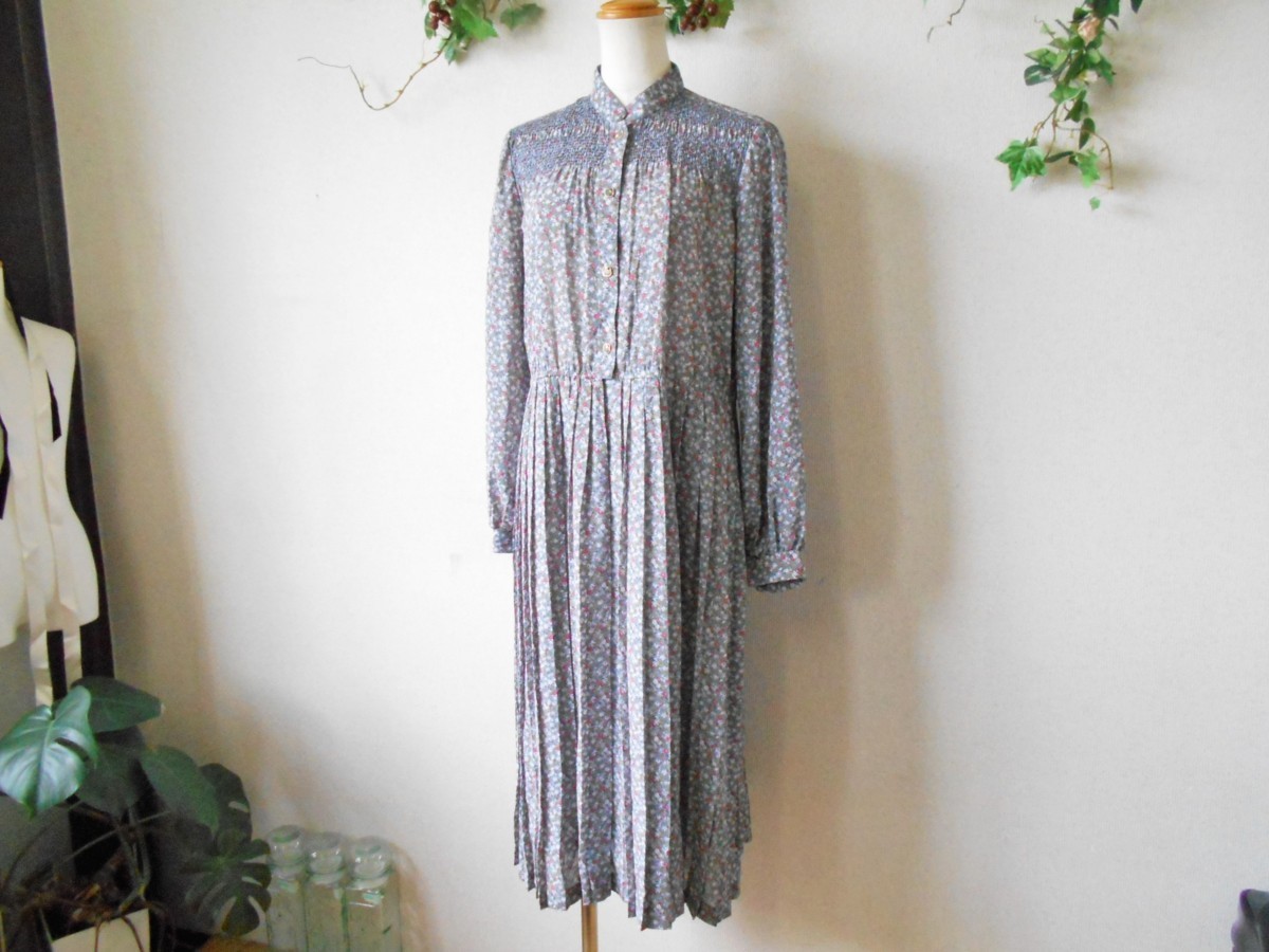 【ポイント】センシブルのワンピースになります。お色はグレーベースで小花プリントが全体に入っています。