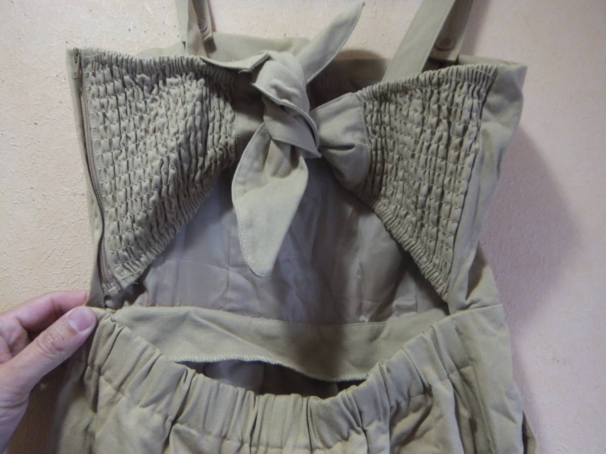 状態は、着用感多少、問題なくお使いいただけます。 サイズはM、総全長約139cmで肩紐で調整可能、股下約63cmです。 かわいいです。 注)画像の丸い丸はフラッシュの加減で、汚れなどではございません |