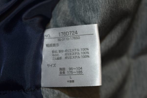 ★サイズ ●L 175-185 ★実寸 ●肩幅:40●袖丈:58●着丈:55●身幅:46 ㎝ ※多少の誤差はご了承ください。 ★素材 ●表地 / ポリエステル●裏地/ポリエステル●中綿 /ポリエステル ★色 ●グレー ※デジカメの撮影具合により多少色味が異なる場合がありますので、ご了承下さい。 ★状態 ●新品同様。 ※USED品に関しましては、気にならない程度のほつれ・糸のはみ出し・毛羽立ちシワ・ヨレ.薄汚れ等ある場合がございます。 ★説明・特典★ ※宅配便は同じ送料であれば合計3点まで同梱いたしますので、よろしければご活用ください。 ※1週間内に4点であれば10%、7点であれば15%、値引きさせて頂きます。安い商品がさらにお安くなりますのでご検討ください。尚、このサービスは申告制ですので落札時に申し出てください。 | ||