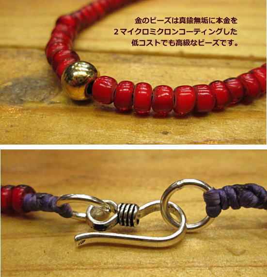 商品詳細 素材…アンティークホワイトハートビーズ・本金2マイクロミクロンコーティングの真鍮無垢ビーズ・シルバーフック・蝋引き糸。