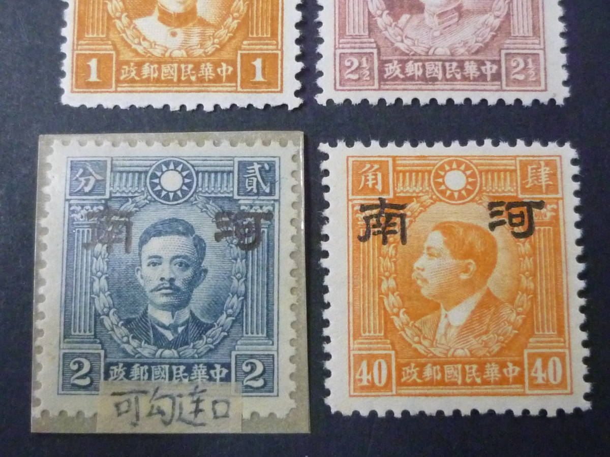 22 P №233C 中国占領地切手 1941年~ 河南 大字加刷 香港版烈士像 有水 1c-40c 計4種 未使用NH~LH