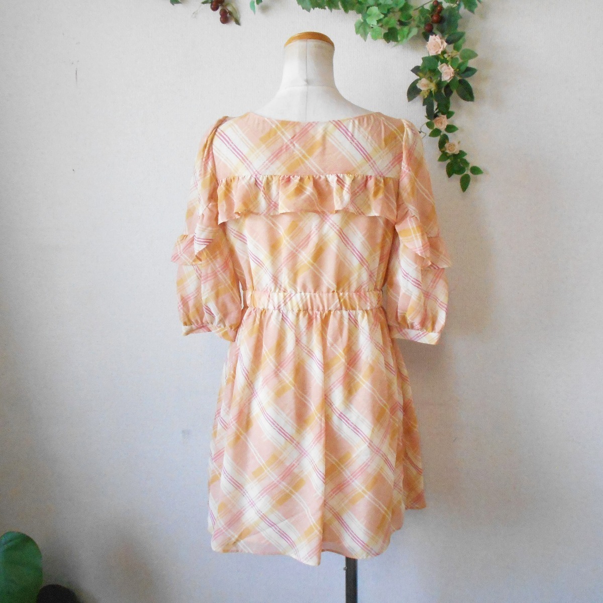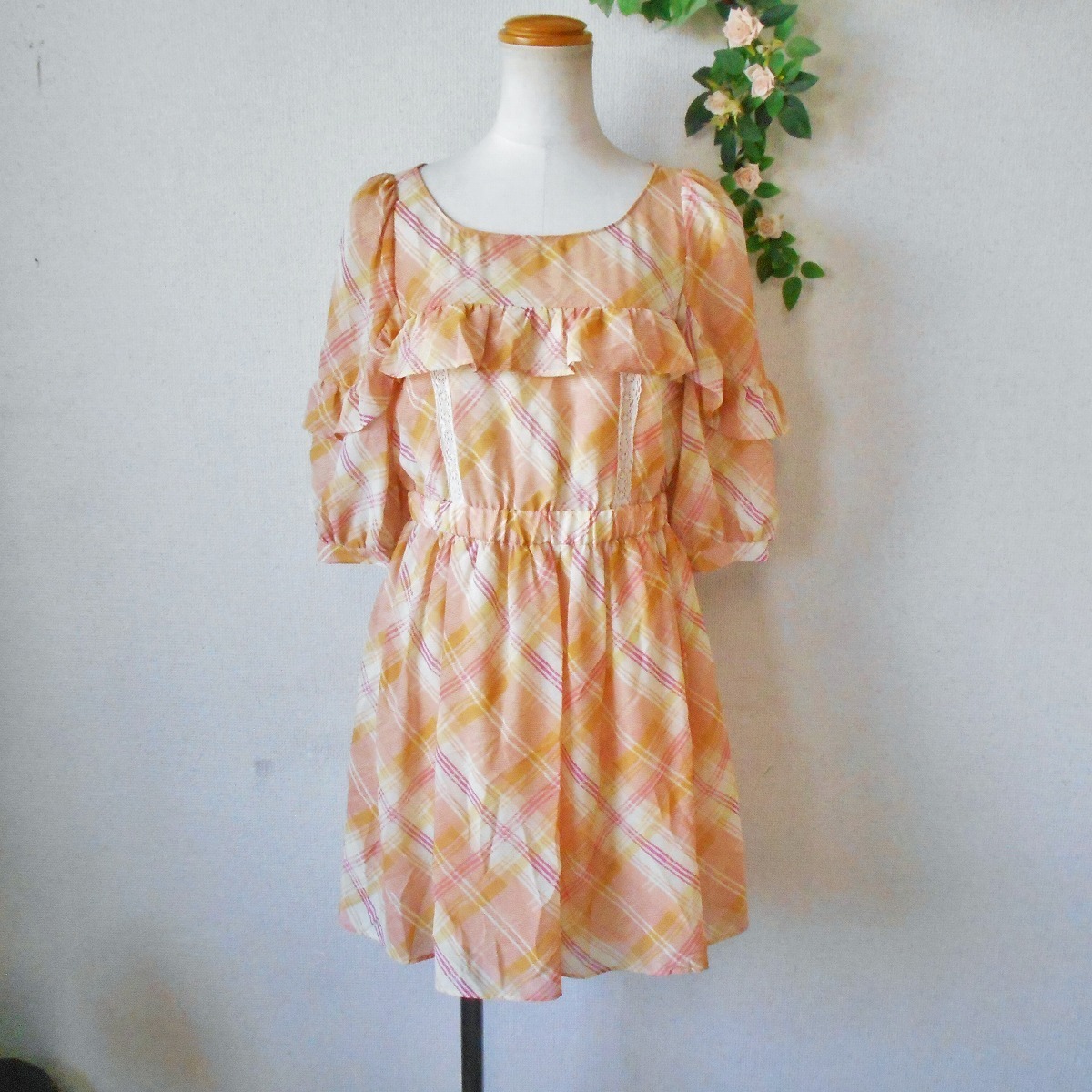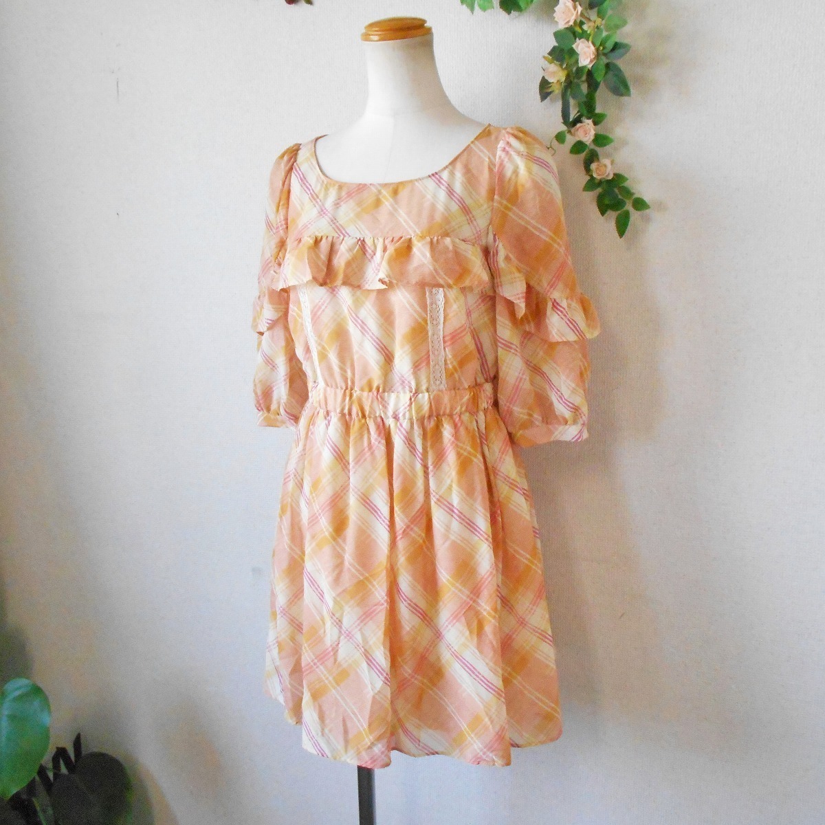 ジルスチュアート JILL STUART 春夏 向き フリル の 可愛い 5分袖 ワンピース M