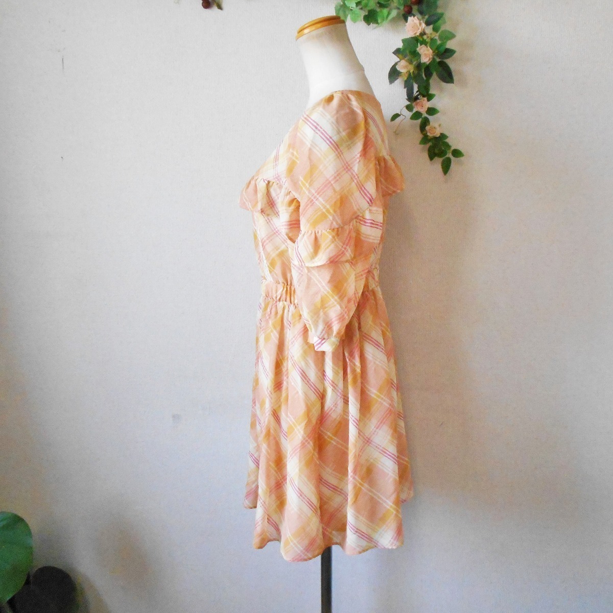 【ポイント】ジルスチュアートのワンピースになります。お色はオレンジ系のチェック柄で春夏を中心に着ていただけるお品です。