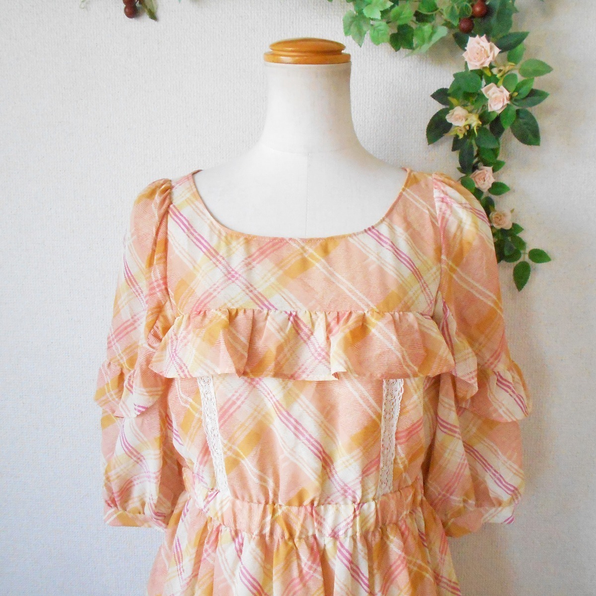 お袖は5~6分くらいで身頃とお袖にはフリルが使用された、とっても可愛い一着です。