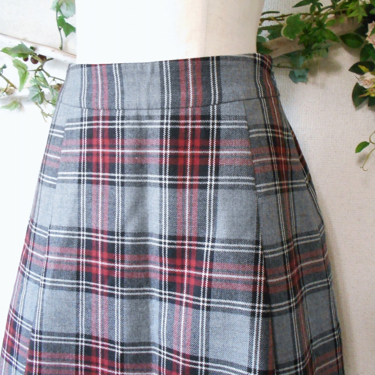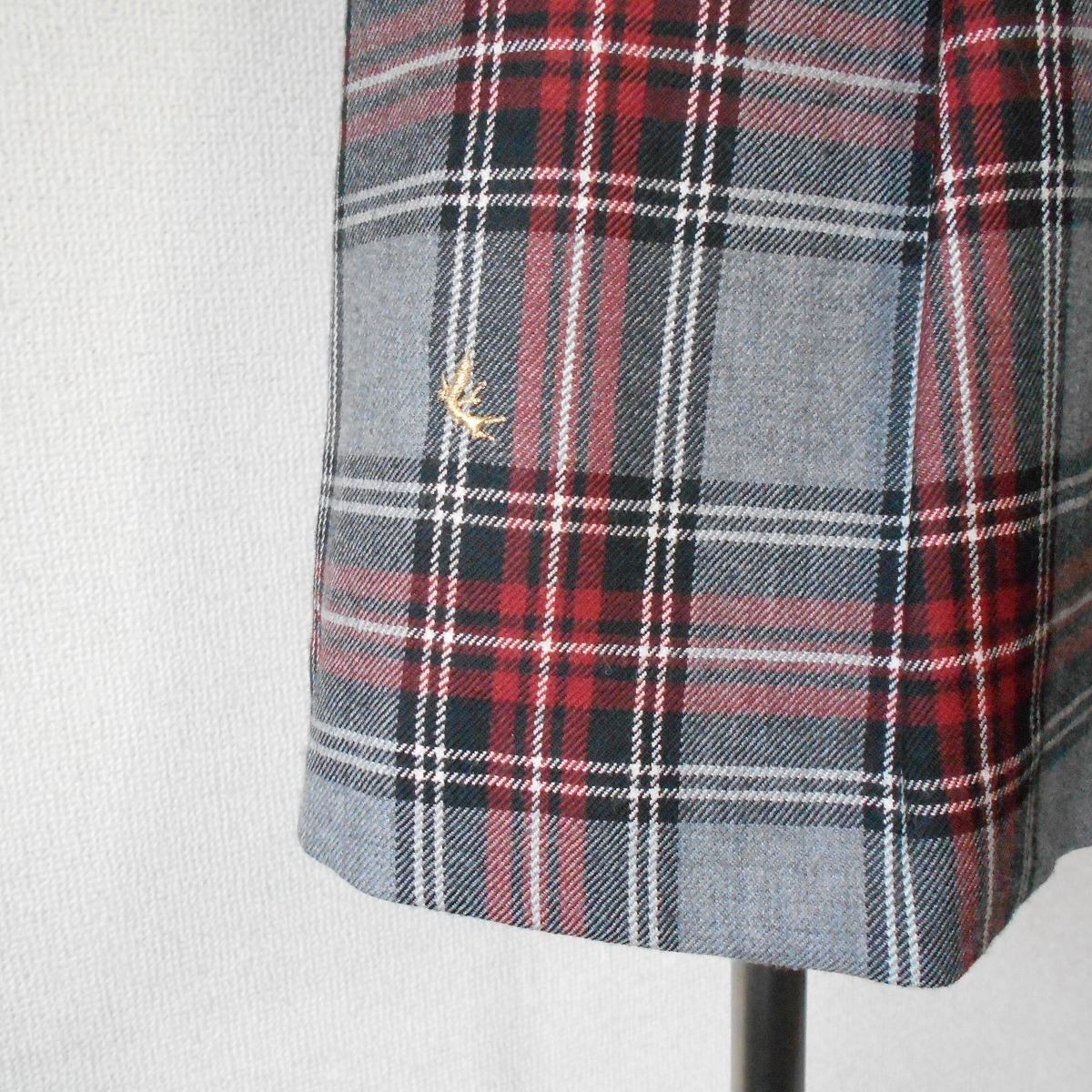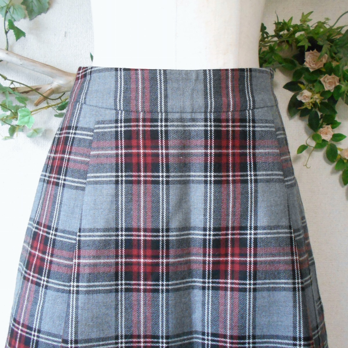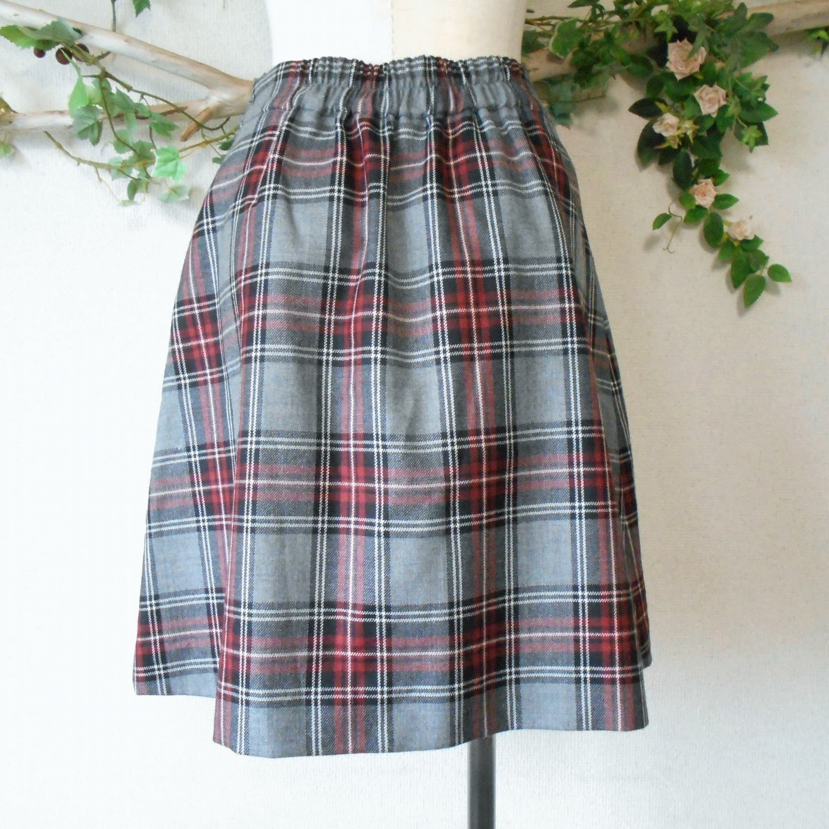 【ポイント】フランシュリッペのスカートになります。お色はグレーや赤系等、多色使用のチェック柄で、ウール100%の秋冬向きです。