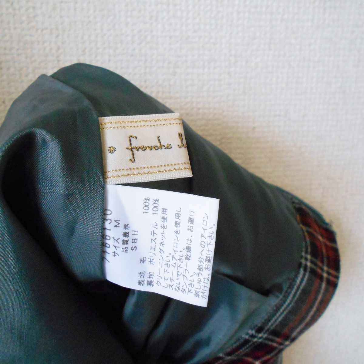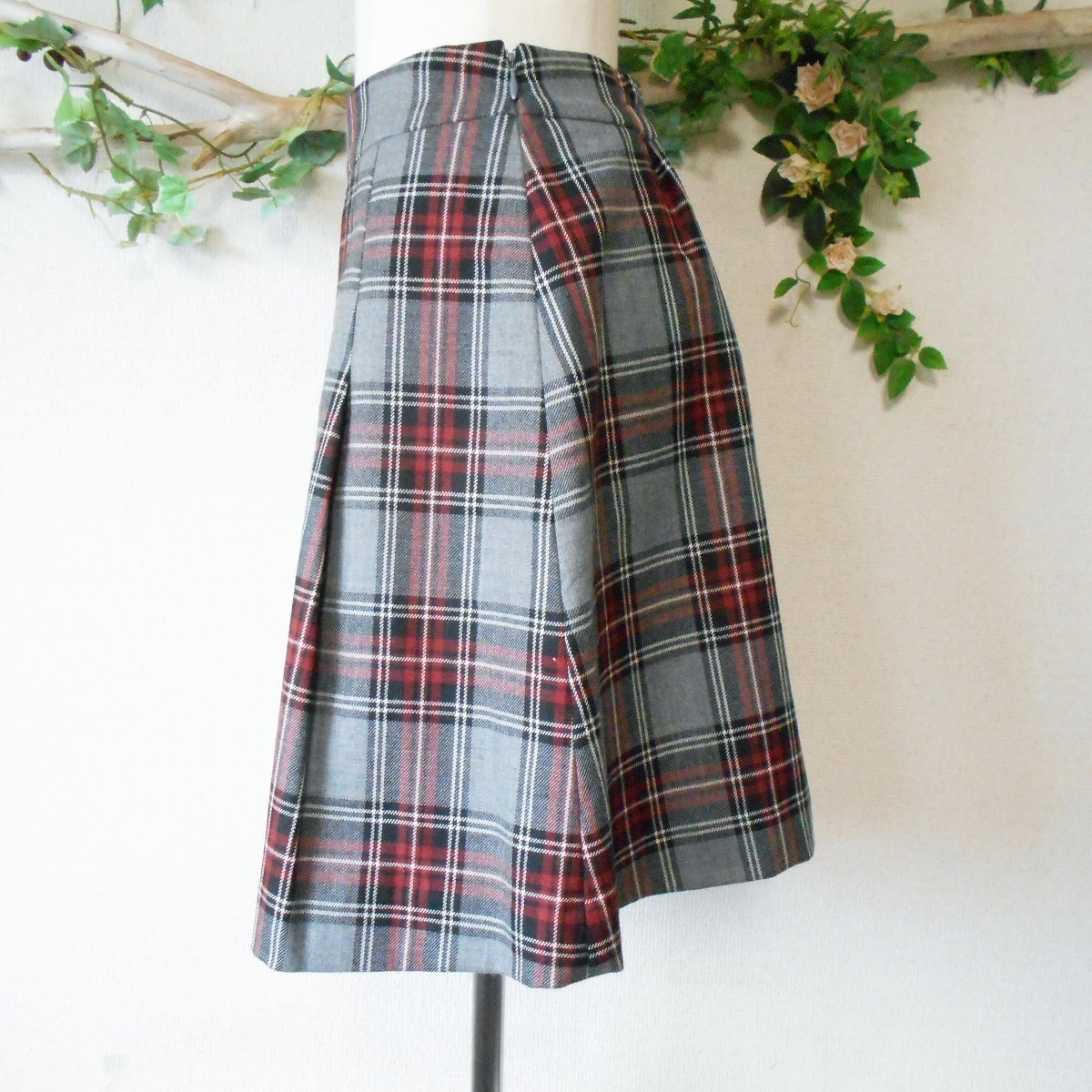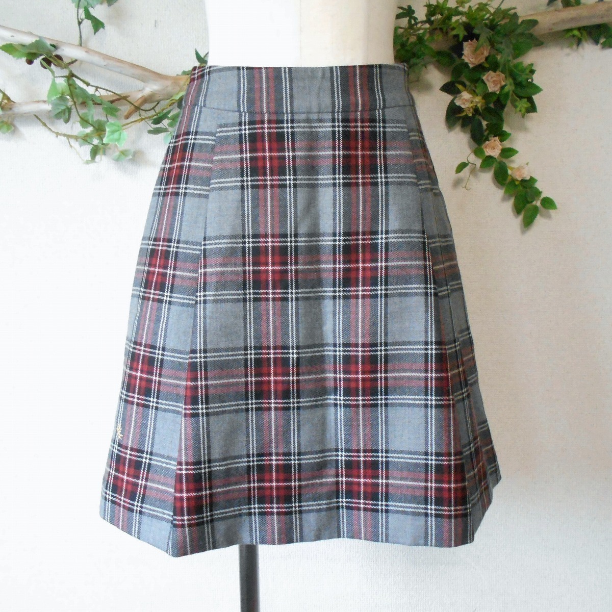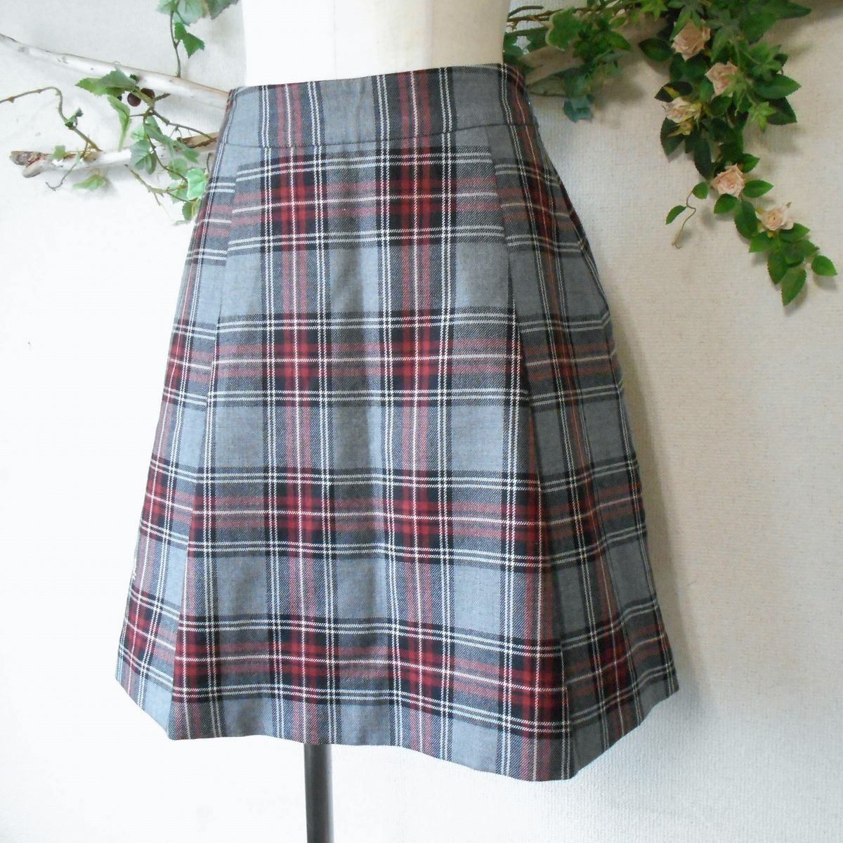 美品 フランシュリッペ franche lippee 秋冬 向き ウール 100% チェック の 可愛い スカート 日本製 M