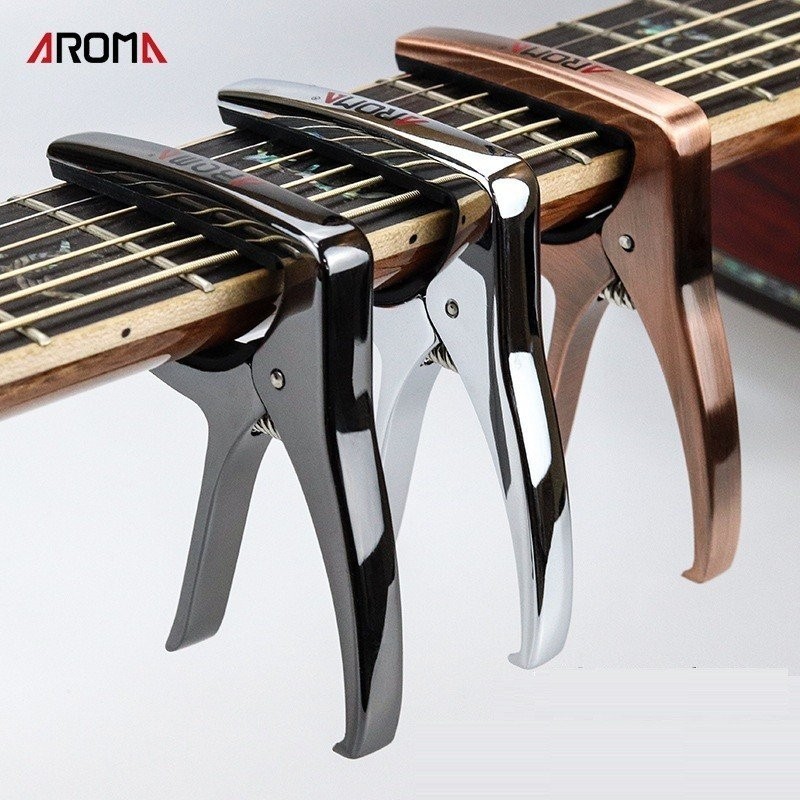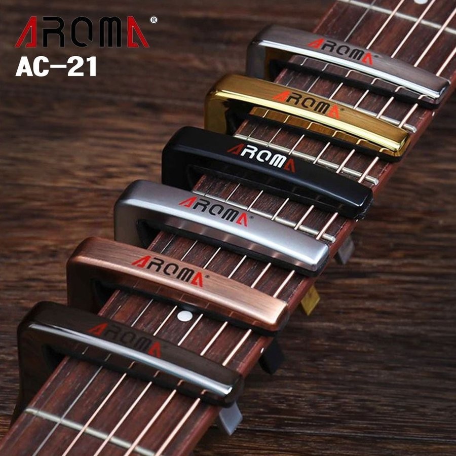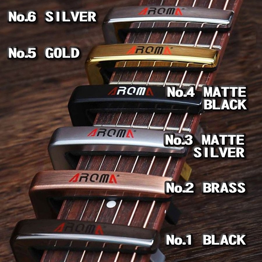 エレキギター・アコースティックギター・フォークギター・ウクレレなど様々なギターに使用出来る、バネ式のカポタストです。