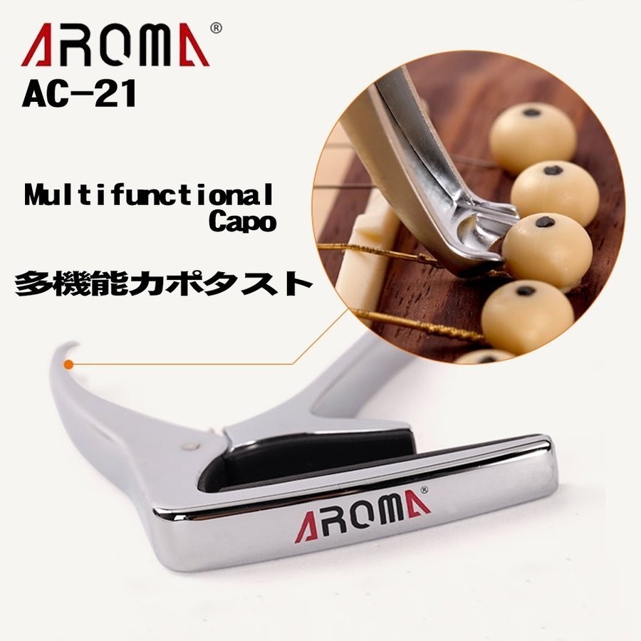フォークギター・エレキギター・アコースティックギターのいずれにも使えるカポタストです。