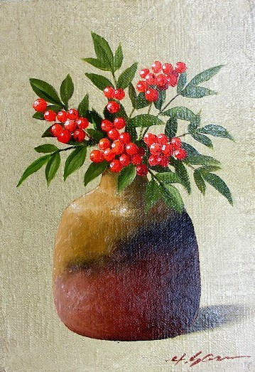 油彩画 洋画 (油絵額縁付きで納品対応可) WSM 「南天」 安田 英明