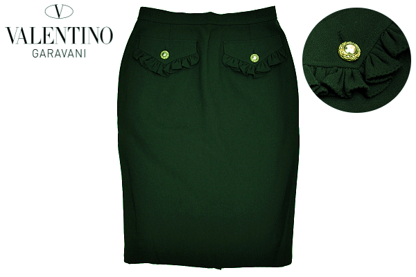 M-1208★超美品★valentino garavani ヴァレンティノ ガラヴァーニ★イタリア製 正規品 グリーン緑色 ロング タイト スカート 42/8