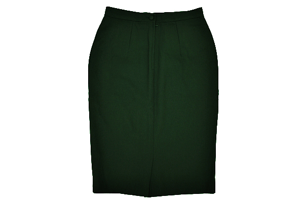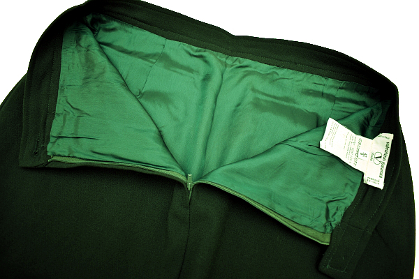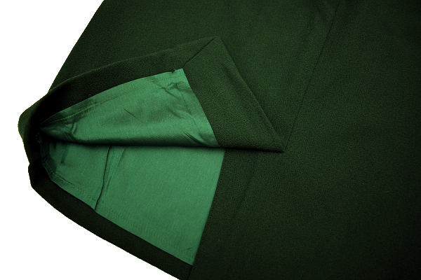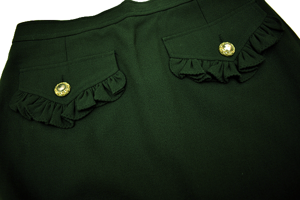 グリーンカラー ロング スカート 裏地あり 後ろウエストファスナー 後ろ裾中央スリット入り フロントポケットは飾りです。
