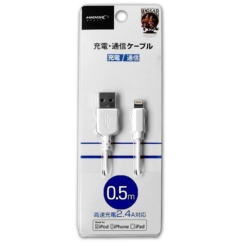 送料無料メール便 ライトニングケーブル 50cm ホワイト Apple公式認定品  HIDISC Lightningケーブル HDII-LHC05WH/0135x1本