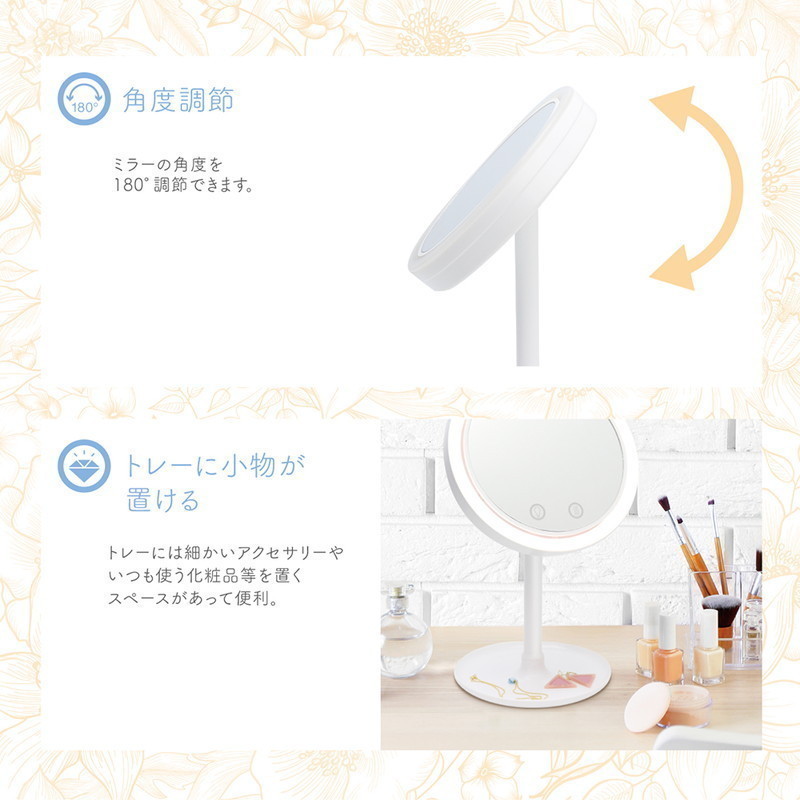 快適メイク スキンケア 無段階調光式 角度調整 小物置き USB電源 乾電池 MEBL-109