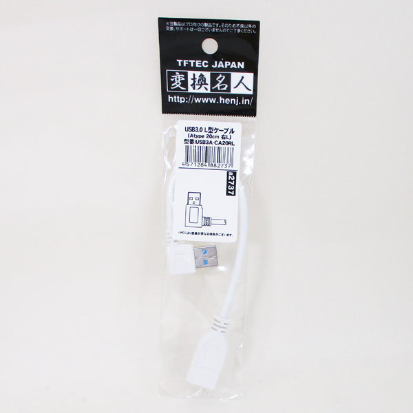 送料無料 USB3.0 L型ケーブル 延長 20cm(右向き変更L)Atype USB3A-CA20RL 4571284882737 変換名人