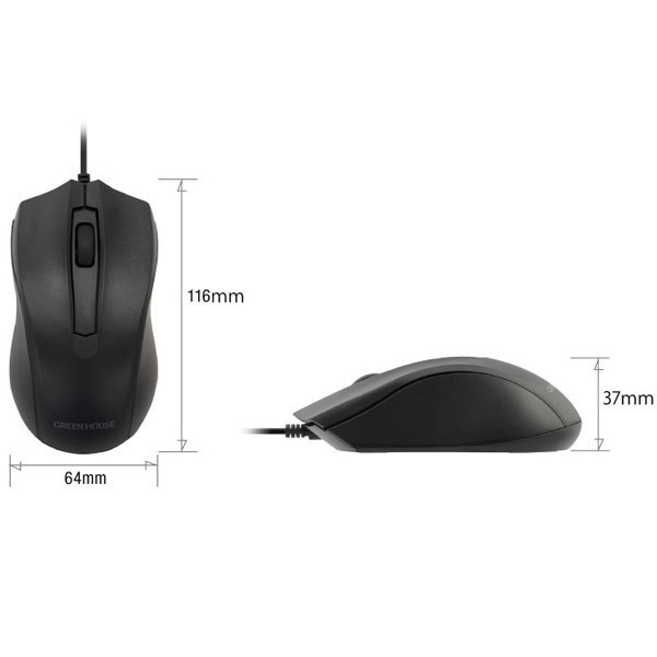 クリック音が気にならない静音ボタン採用の有線式3ボタンマウス