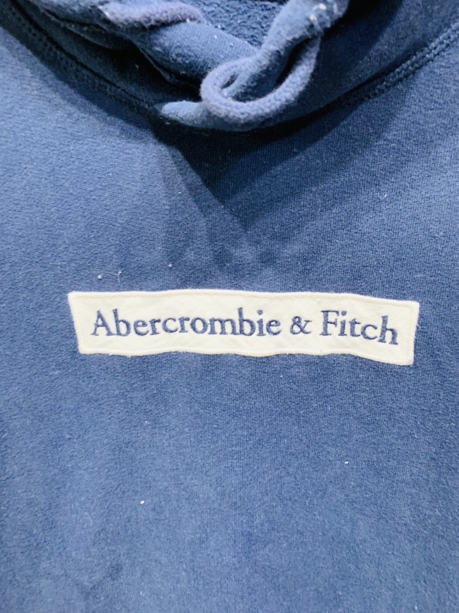 【人気】abercrombie/アバクロ  パーカー 紺/ネイビー メンズ Sサイズ カジュアル ビッグロゴ プリント K1778