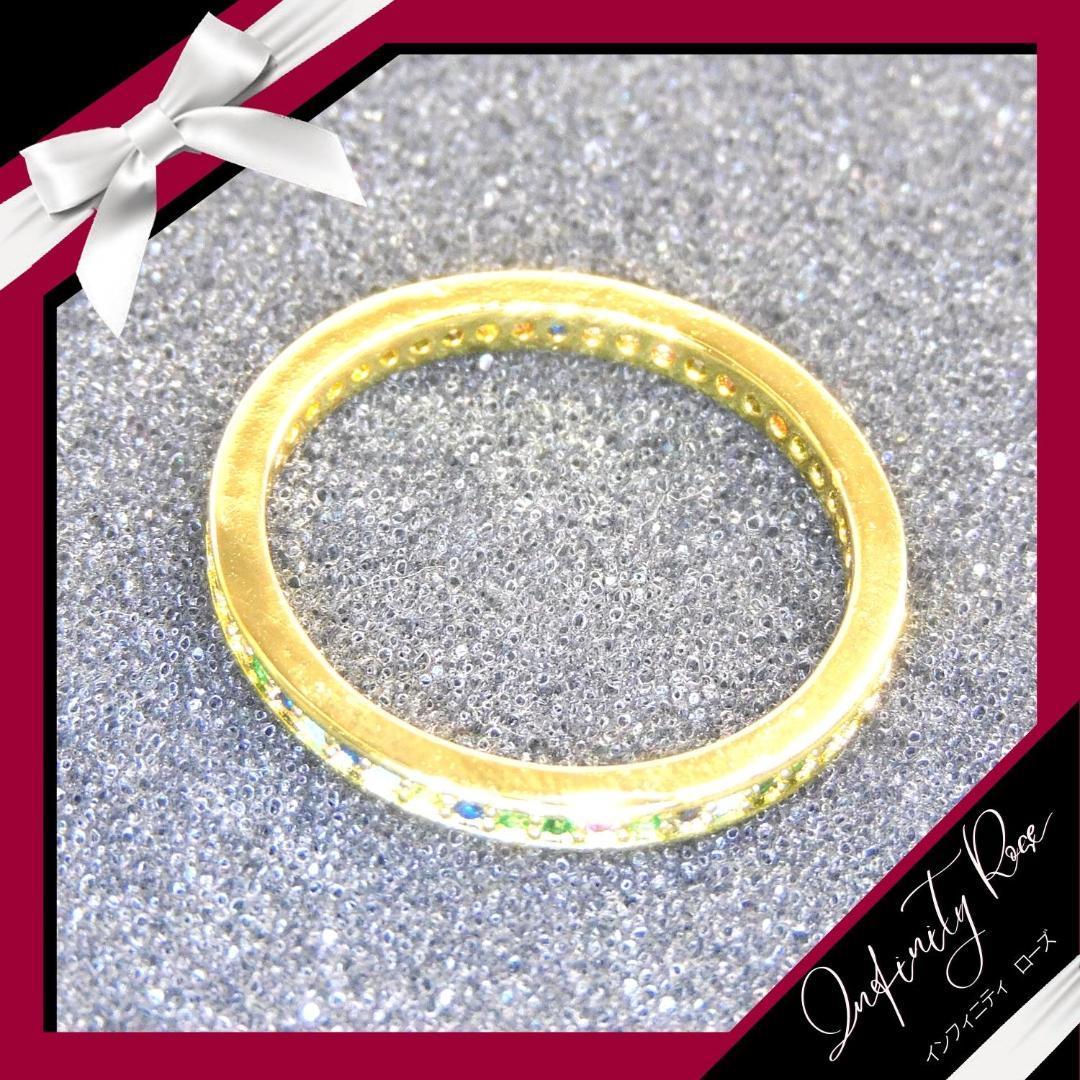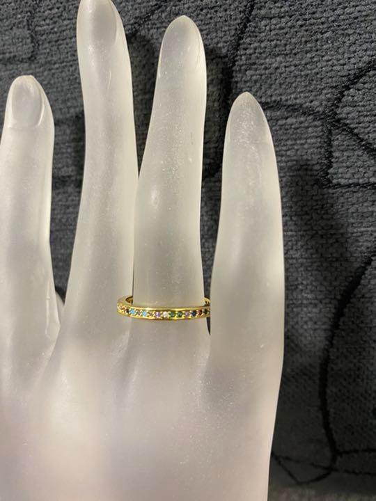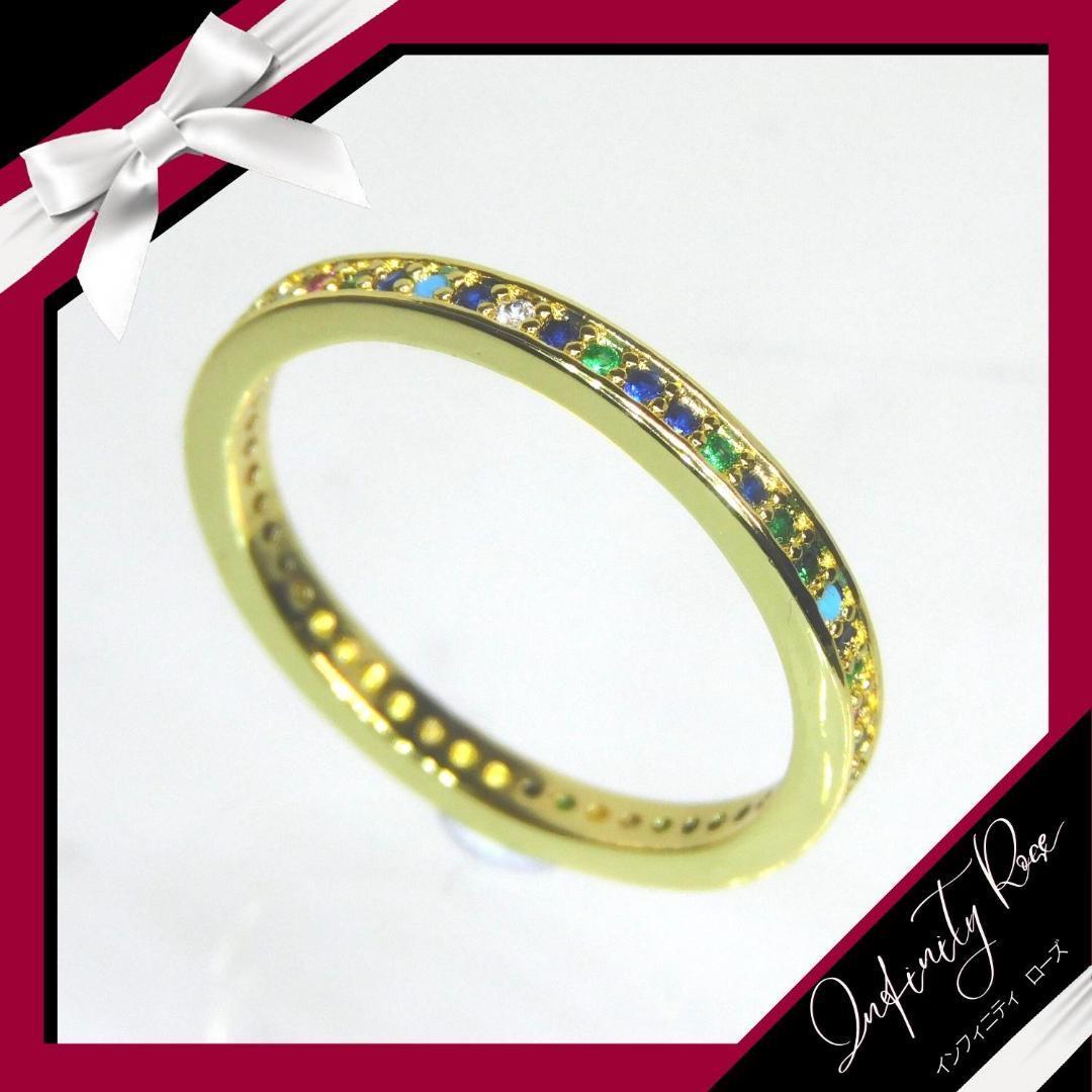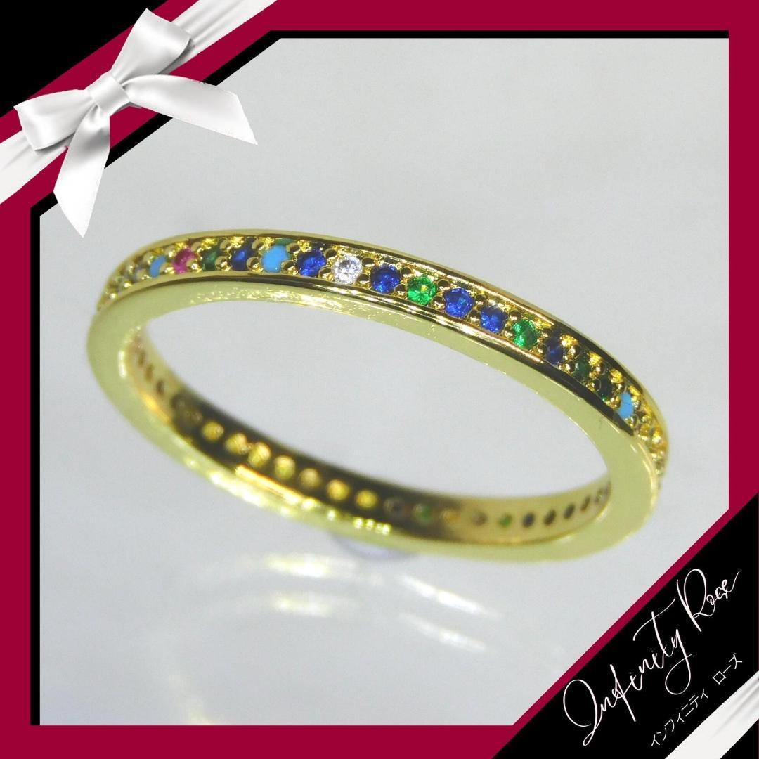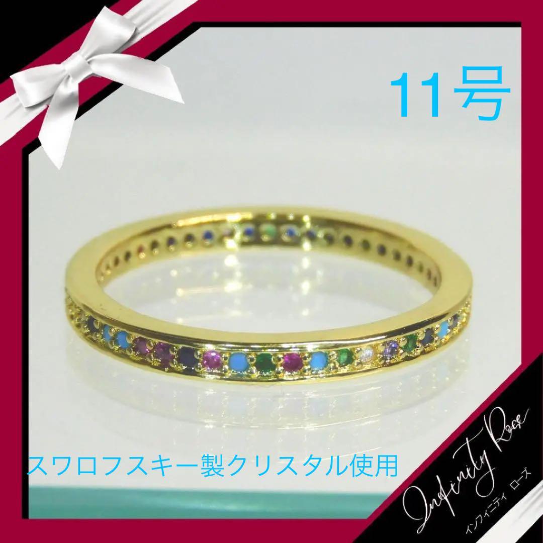(1141)11号 ゴールド×小粒クリスタル カラフル高級仕立て細リング 指輪 スワロフスキー製クリスタル使用