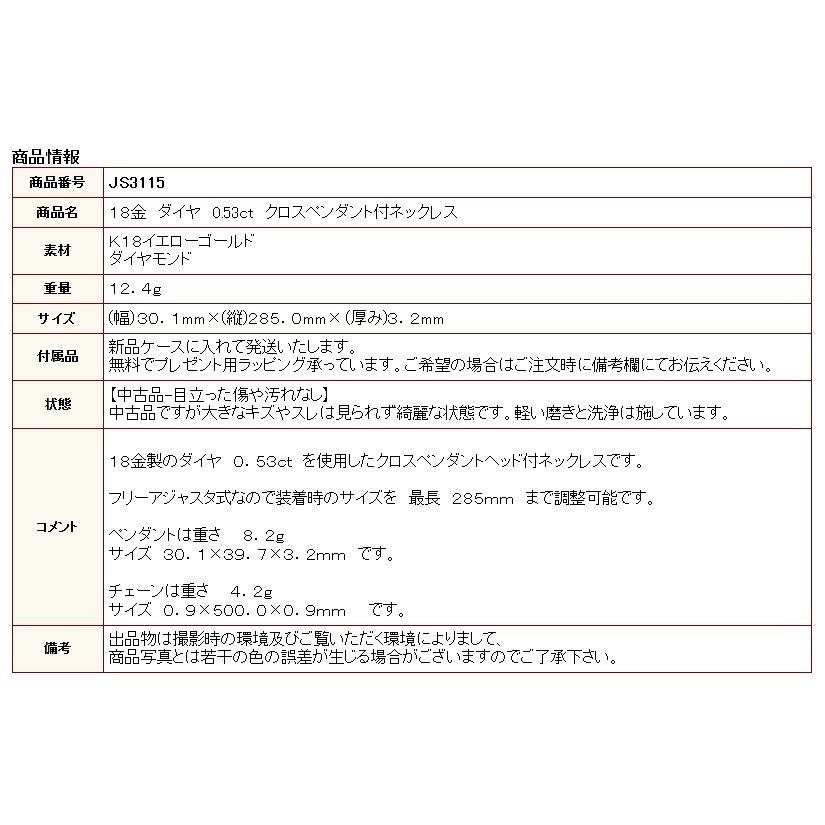 商品名 | 18金 ダイヤ 0.53ct クロスペンダント付ネックレス |