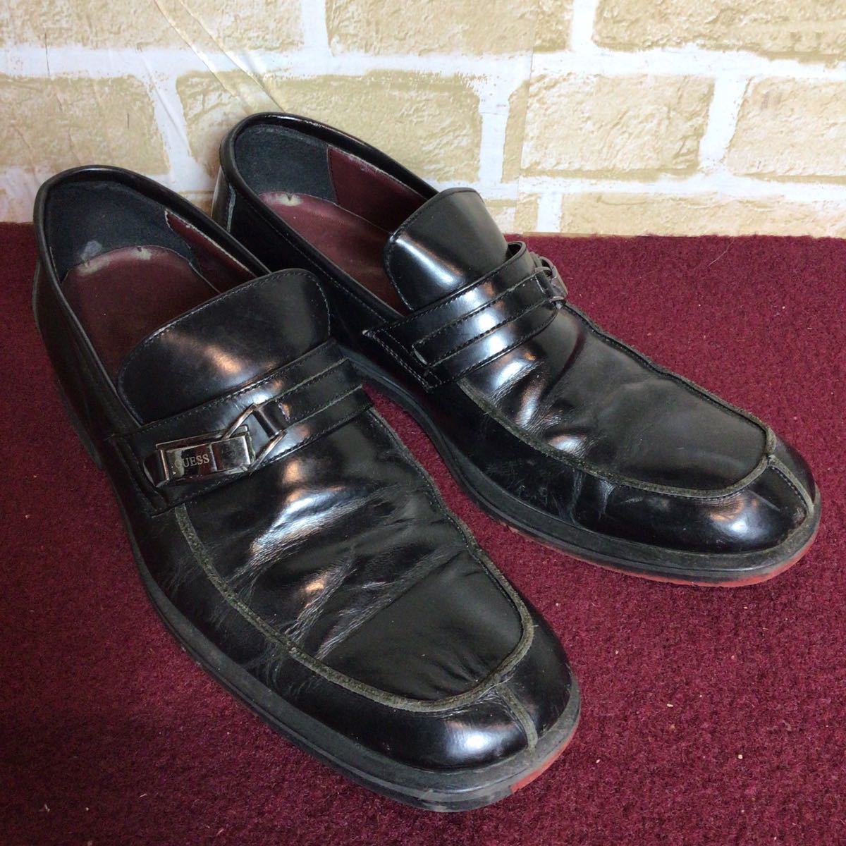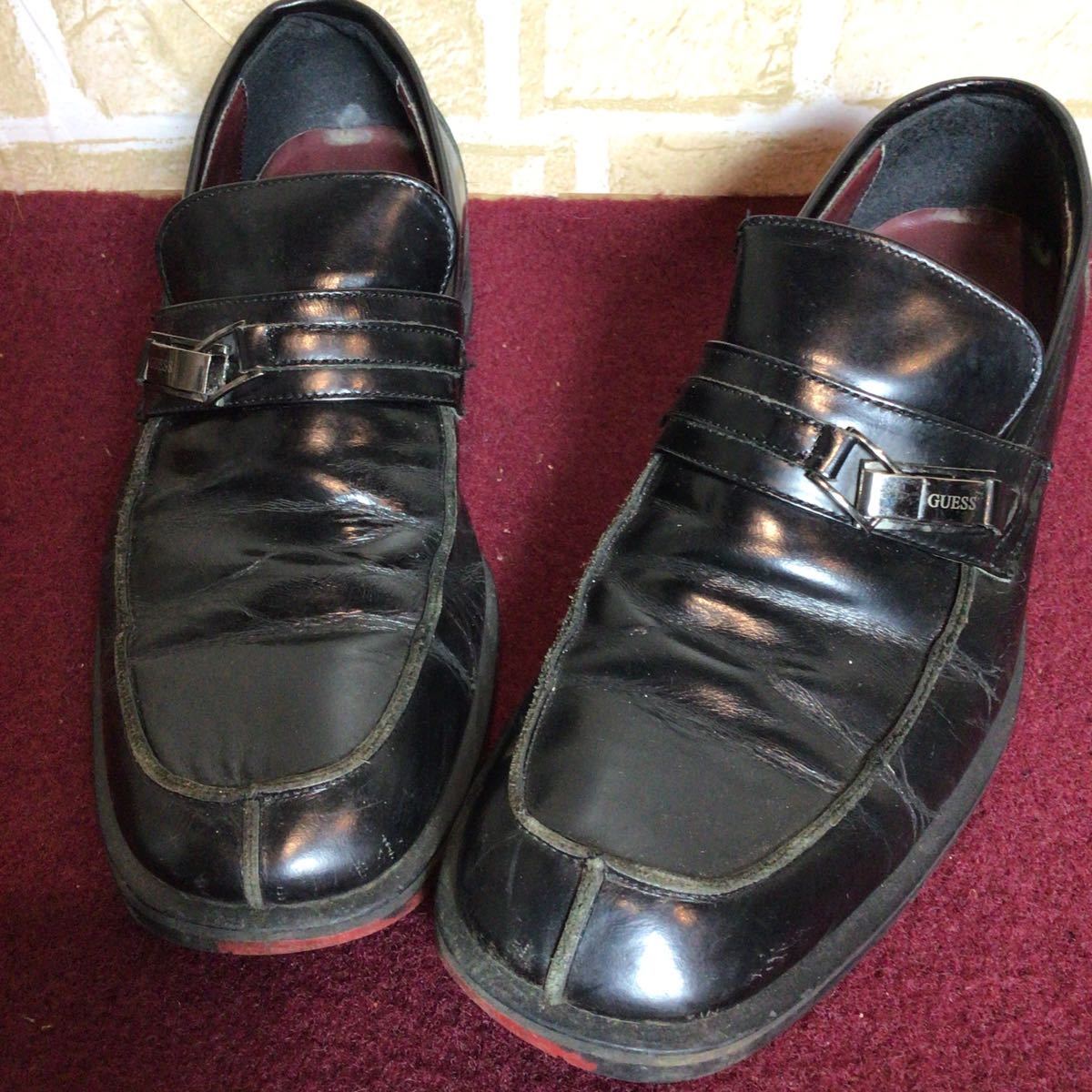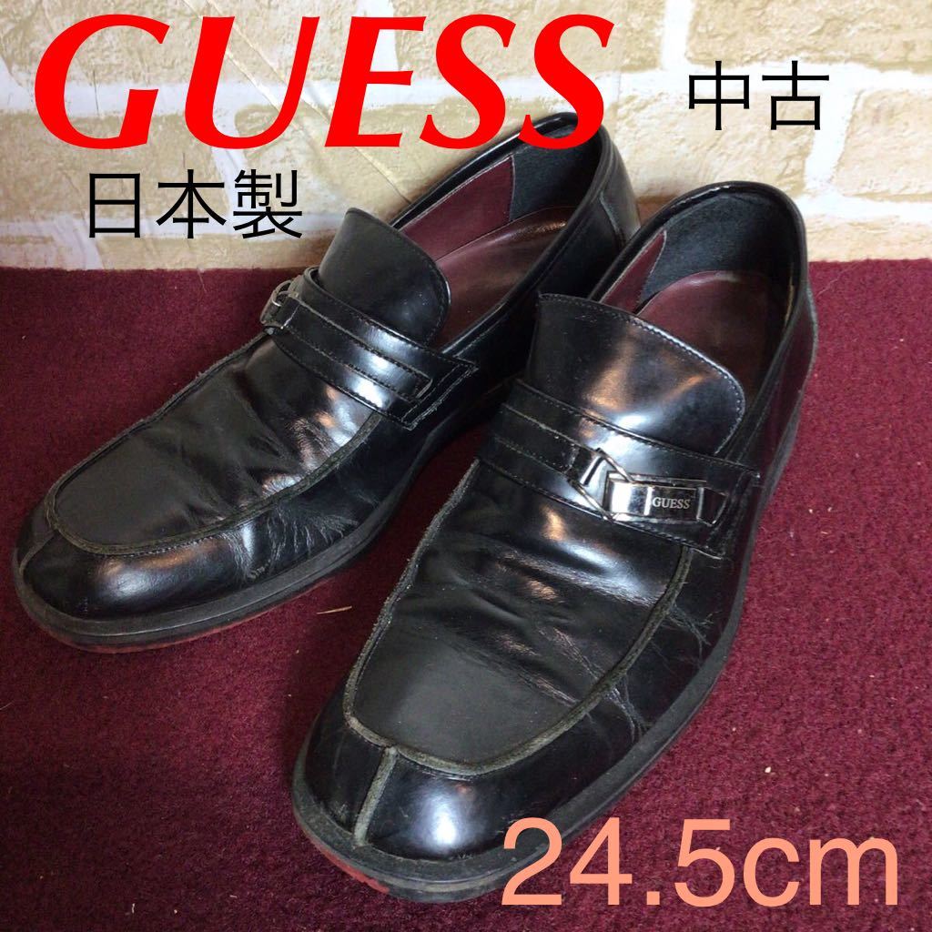 【売り切り!送料無料!】A-185 GUESS!ビジネスシューズ 24.5cm!コインローファー!ブラック!レザーシューズ!冠婚葬祭!中古!