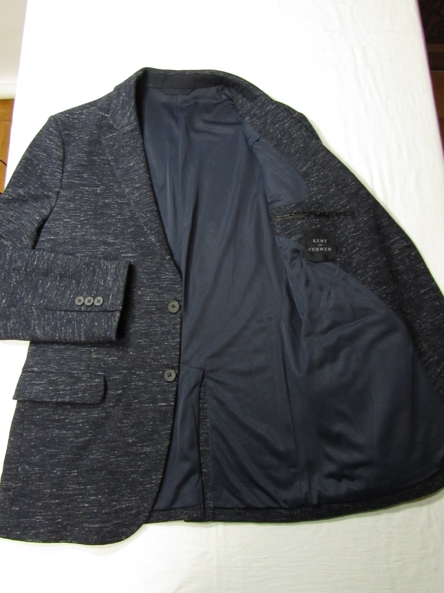高水準なモダンイングランド・ライフスタイルブランド。流行に左右されず自分の価値観を持っている人に向け、現在の英国を“MODERN ENGLAND”として追求し、常に新鮮なコレクションを提案し続けている「KENT AND CURWEN」 生地はウール混のジャージー素材で、麻が9%混ざっておりますが秋冬物の素材です。 内ポケット口がななめに角度がついており、オシャレです。 メンズ・ウールリネンジャージー・テーラードジャケット/秋・冬 シングル2つボタン/センターベント/裏地-総裏/台場仕立て/肩パッドなし |