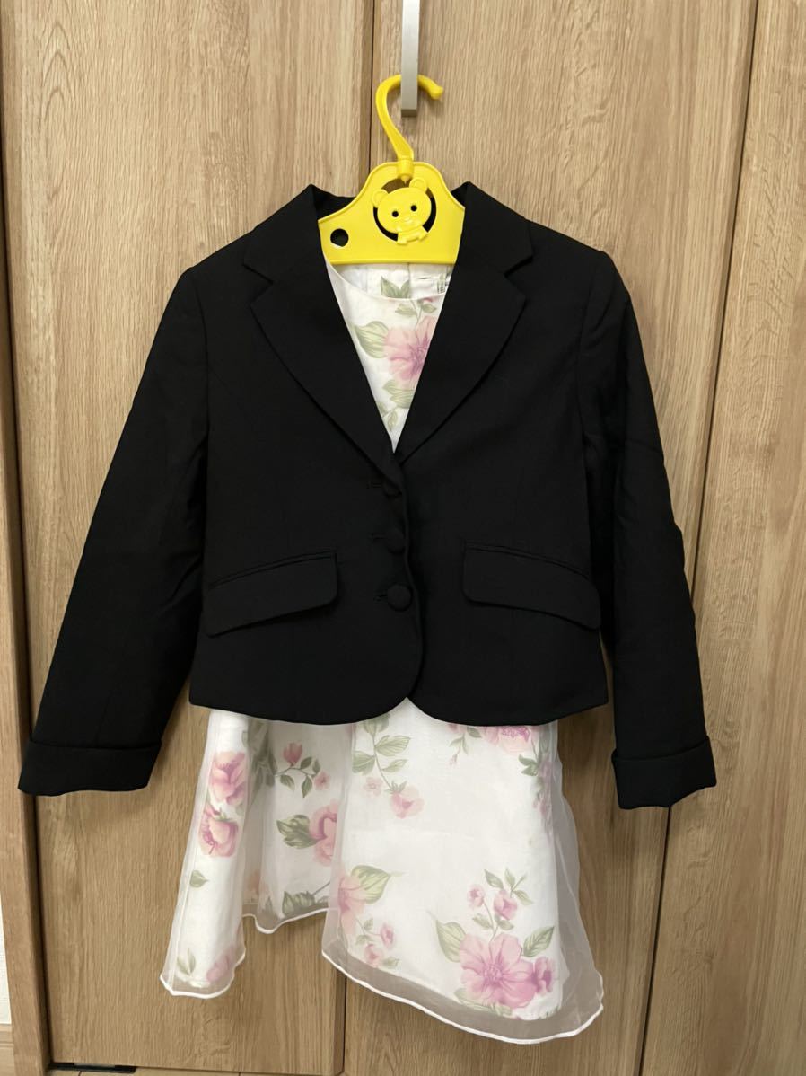 20コムサイズムの黒系のフォーマルジャケット おまけワンピース お上品 お受験にも サイズ120