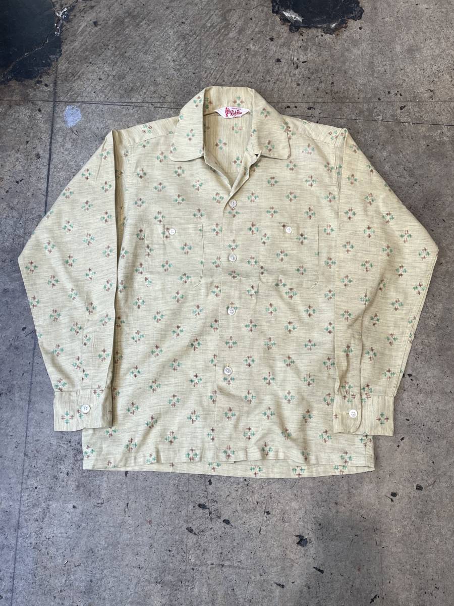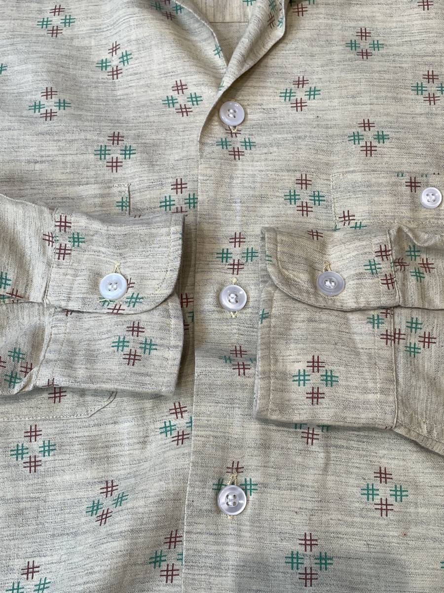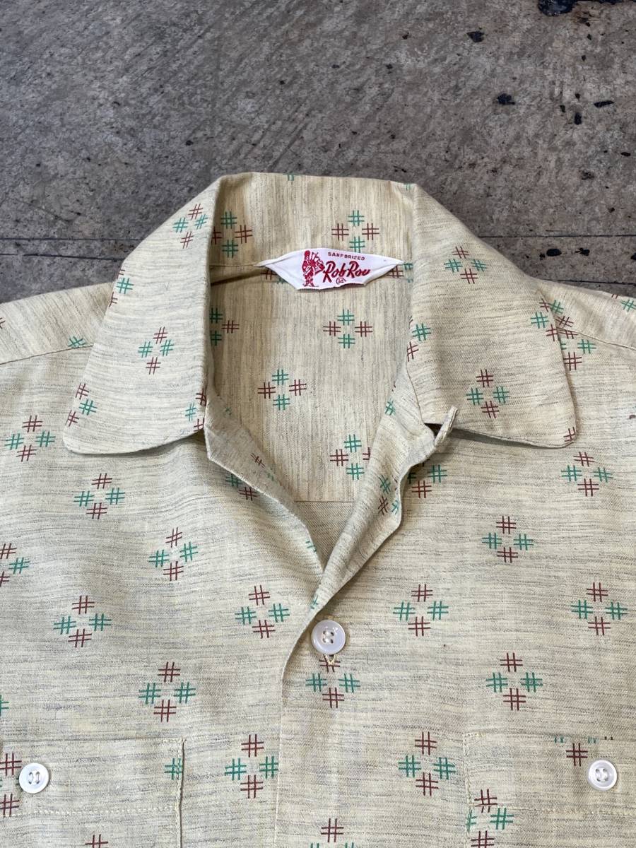 希少!未使用品!USA製!40s 50s 60s RobRoy 開襟 オープンカラー かすり ネップ BOXシルエット ロカビリー 小さいサイズ(14)462