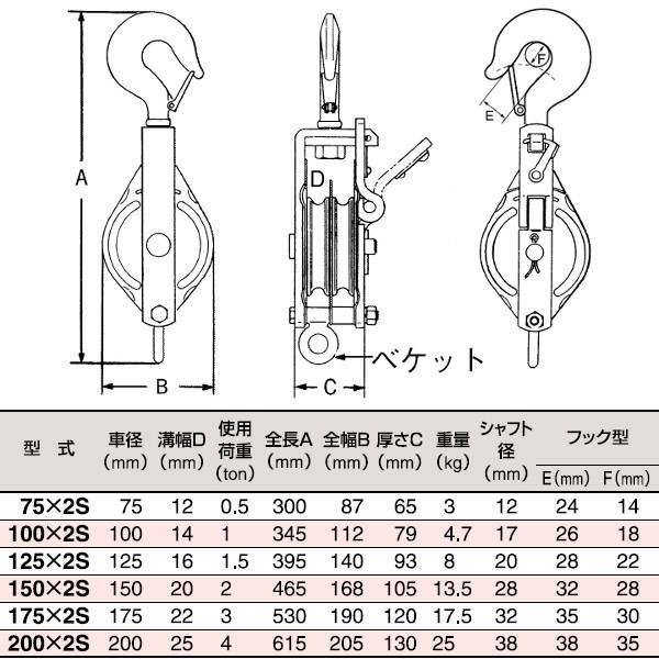 フック型スナッチ滑車 枠を開くことができますので、ワイヤーなどを途中から入れることができる。 先端加工(フック付等)されたロープや長いロープを装着するときに便利! ![]() 【特長】 強力・堅牢な滑車です。 フックは特殊鋼鍛造で、はずれ止めが付いていますから安全です。 使用荷重は動滑車としての吊り上げ使用荷重です。 定滑車としてご使用の場合は記載の使用荷重の半分以下でご使用ください。 ※スナッチは必ず測板を閉じた状態でご使用ください。 |