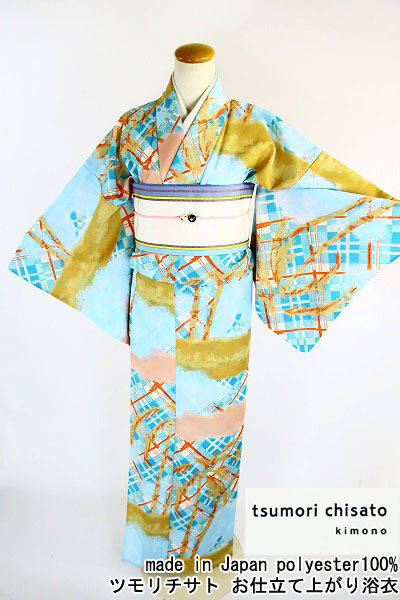 | 【送料無料】新品 ツモリチサト ブランド浴衣 セオ・アルファ 水色 南国 トロピカル 化繊 仕立上がり 日本製 m-2842-2 |