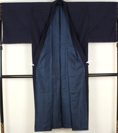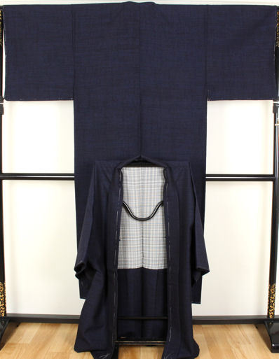 | 紬アンサンブル 袷 濃紺地 LL寸 新品 しつけ付き | |