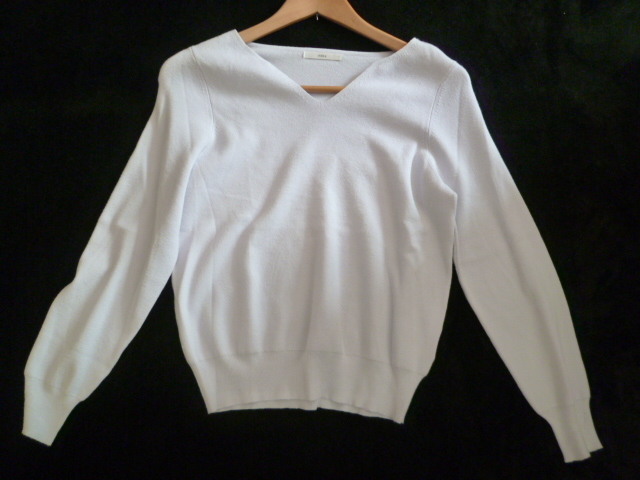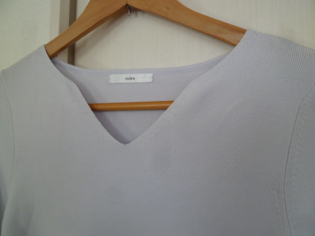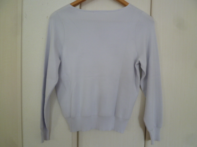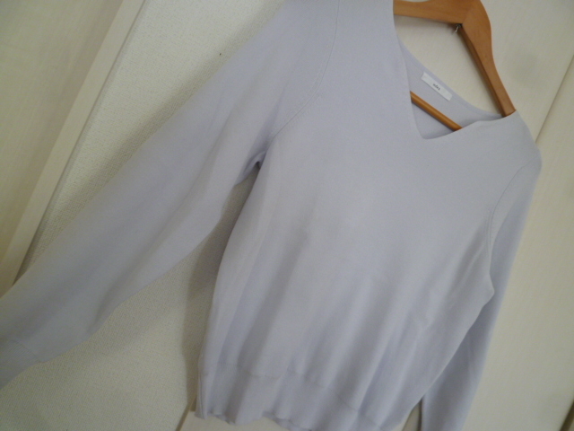 index/インデックス△淡水色VネックシンプルニットS/きれいめ通勤長袖トップスライトブルーキーネックワールド△K124