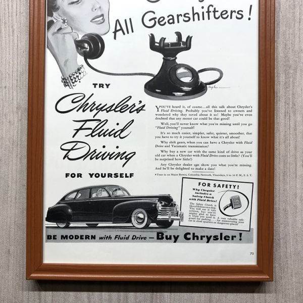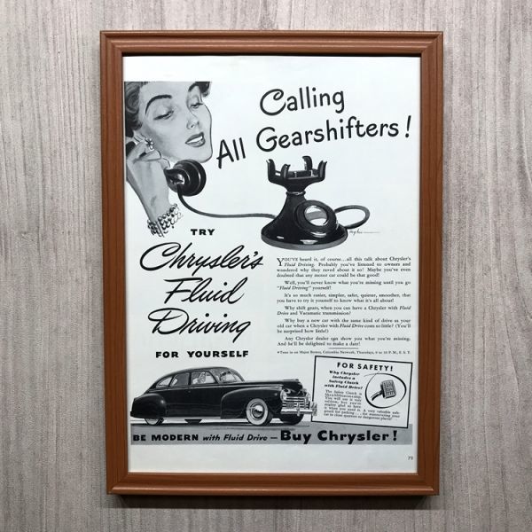 ◆即決◆1940年(昭和15年) CHRYSLER クライスラー Fluid Drive【B4-2029】アメリカ ビンテージ雑誌広告【B4額装品】当時物広告 ★同梱可