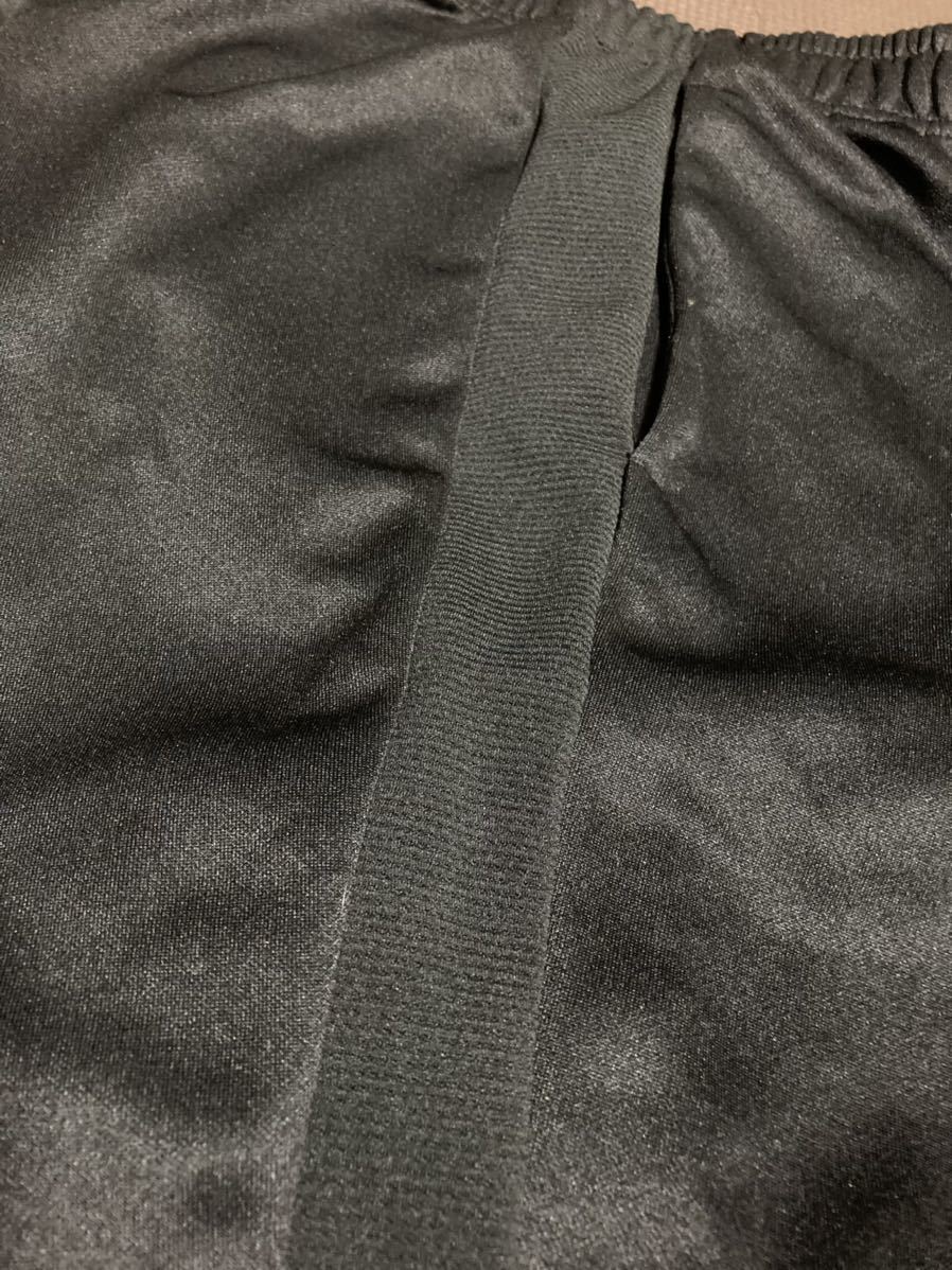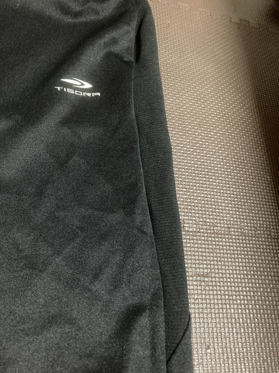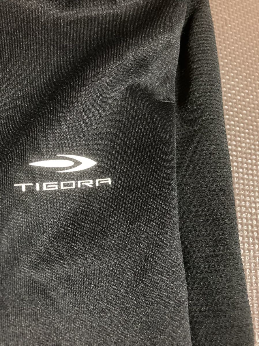 美品TIGORA黒、ロゴ白ストレッチパンツ