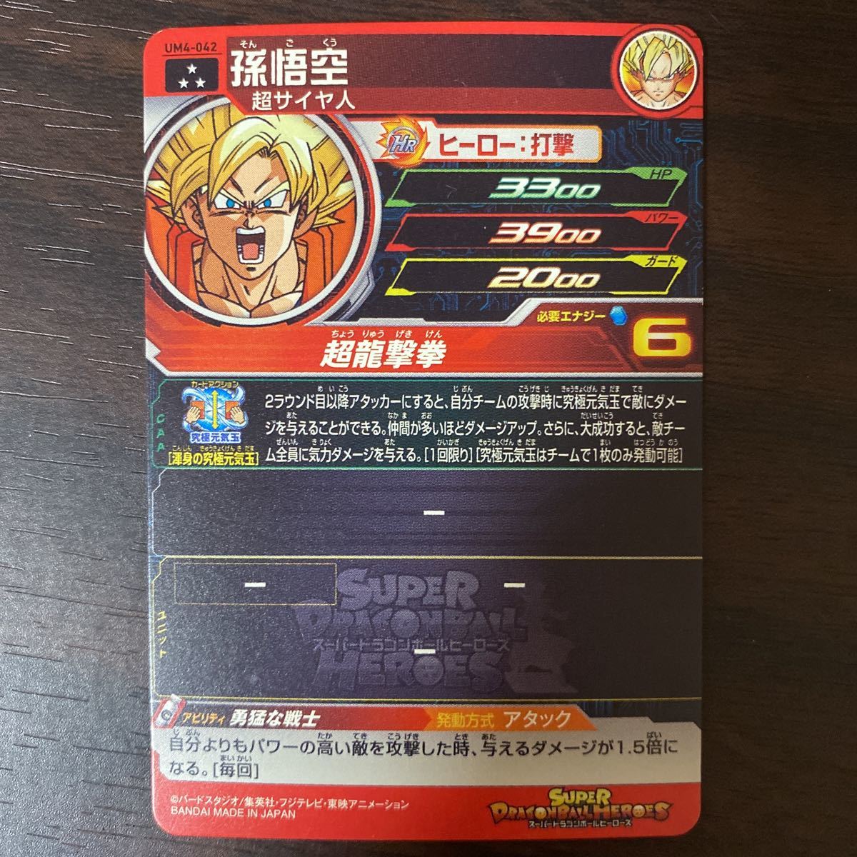 UM4弾スーパーレア/ 孫悟空(超サイヤ人)/ UM4-042/ 技:超龍撃拳/ スーパードラゴンボールヒーローズ/ レアリティ:☆☆☆/ BANDAI