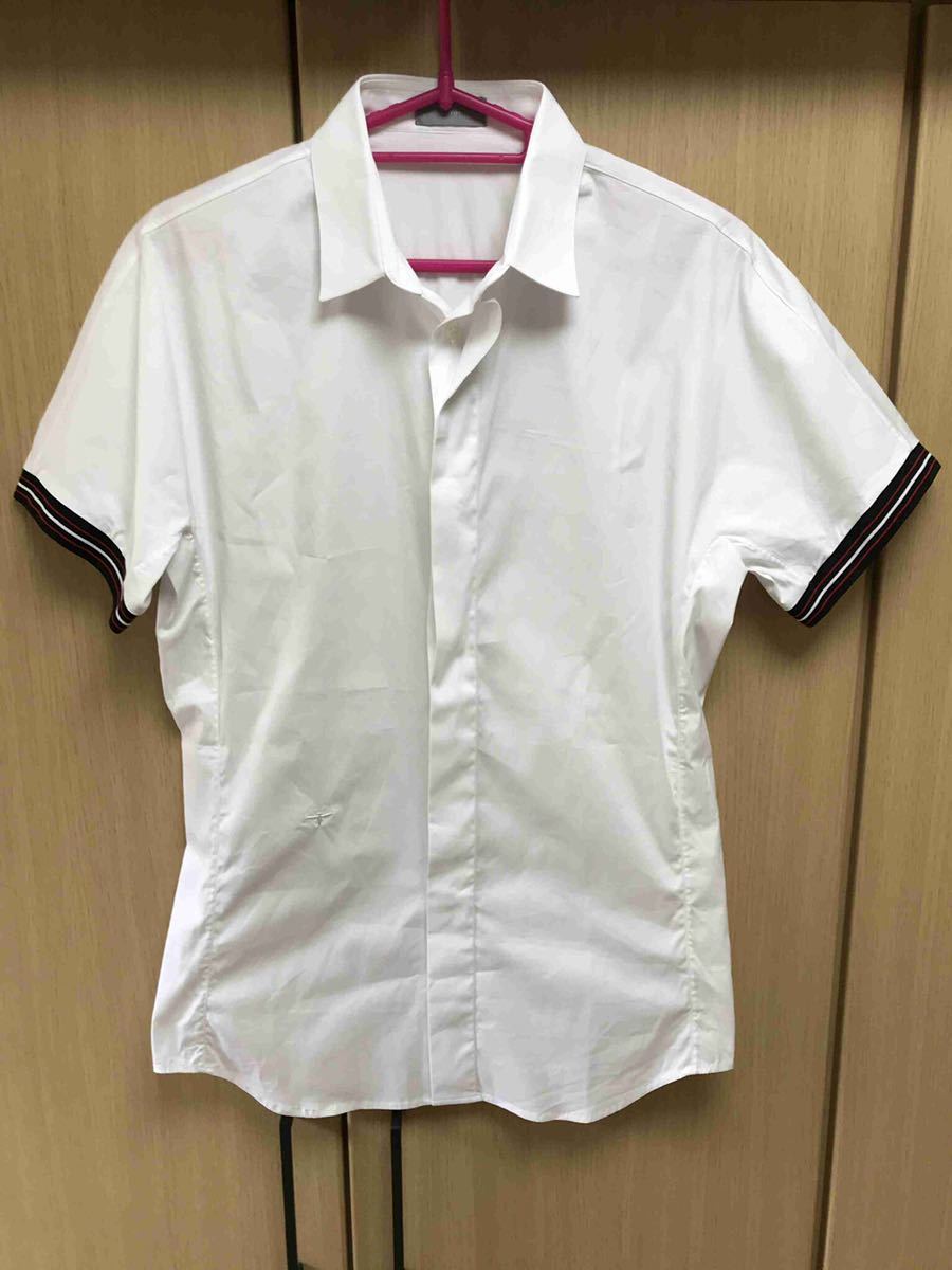 正規 18SS Dior Homme ディオールオム クリスヴァンアッシュ BEE 蜂 刺繍 トリミング 半袖 比翼 ドレスシャツ 白 37