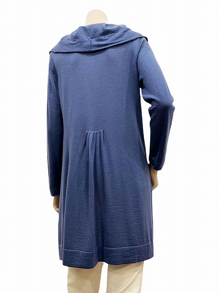 Q極美品★ユキトリイ*YUKI TORII★ブルー系★アンゴラ混ウール★ふんわりタックカラー★大人可愛いニットカーディガン★40号(L)/レディース
