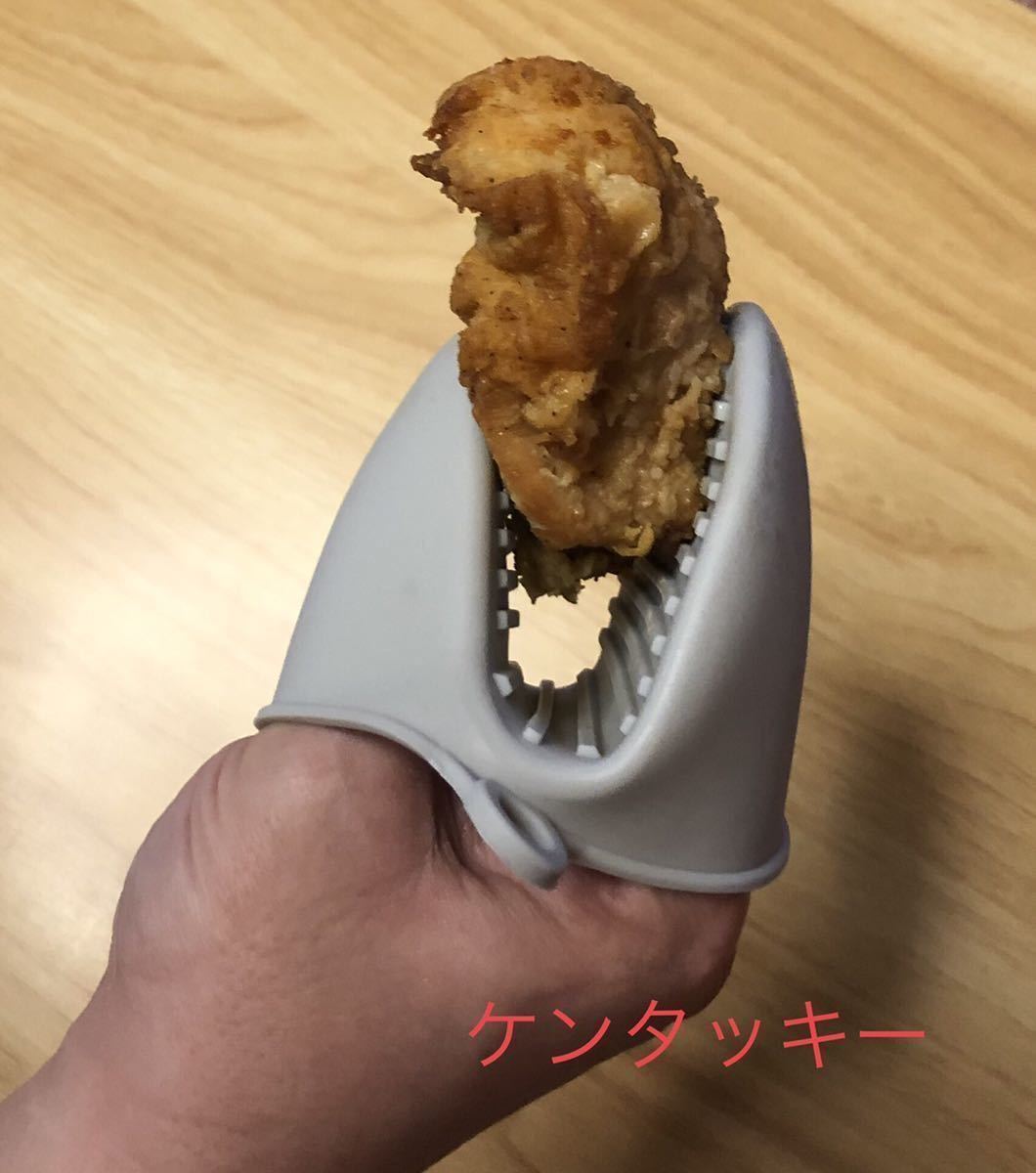 フライドチキン等を食べる時、この商品を使用する事で手が汚れる事なく快適に味わえる様になりました