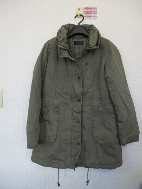 ★ レディース 中綿入り モッズコート カーキ色(L)※難あり