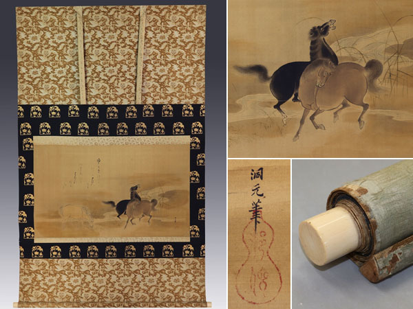 | №2110117 希少【真作】狩野洞元【群馬図】◆絹本◆合箱◆掛軸 | |