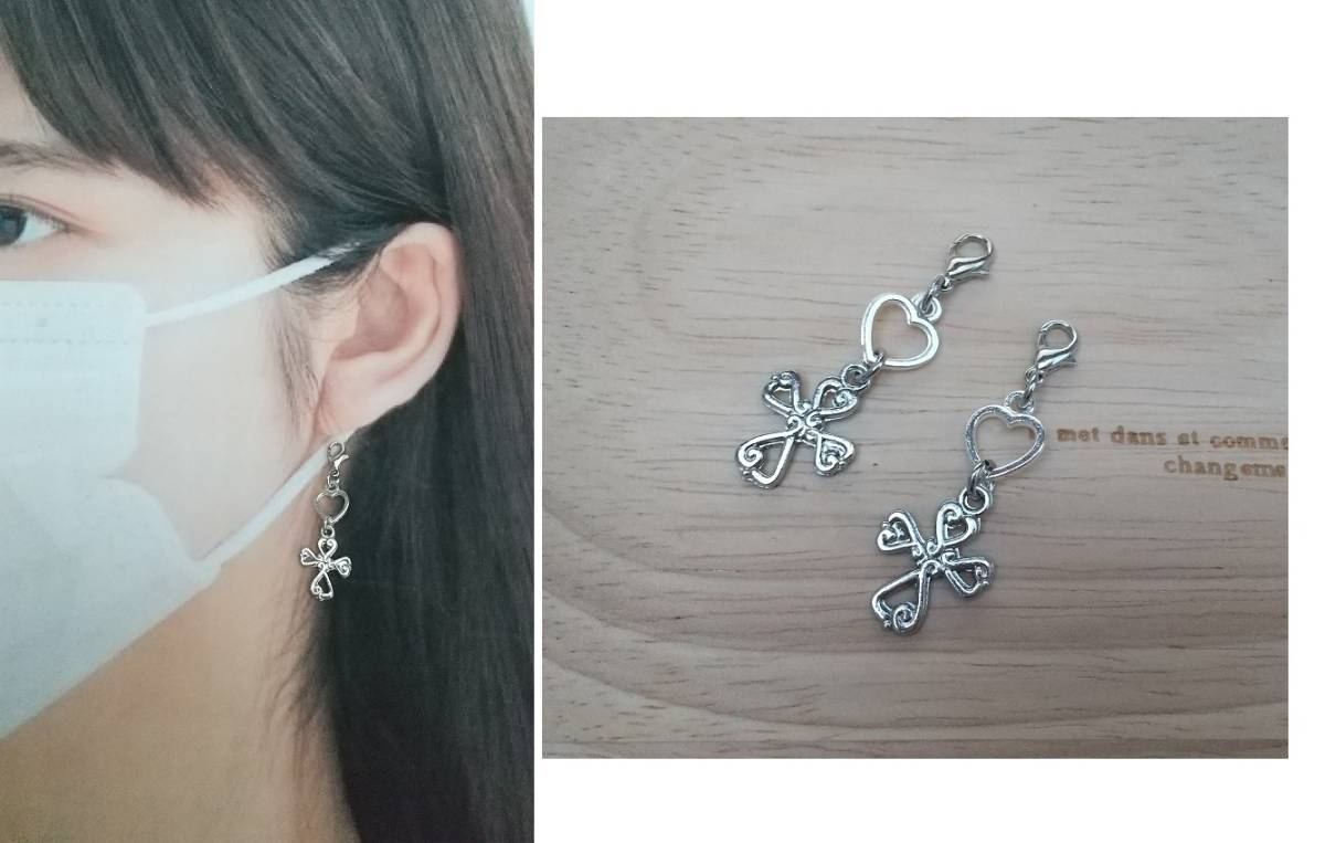 ハート & クロス 十字架 チャーム マスクチャーム (シルバー)