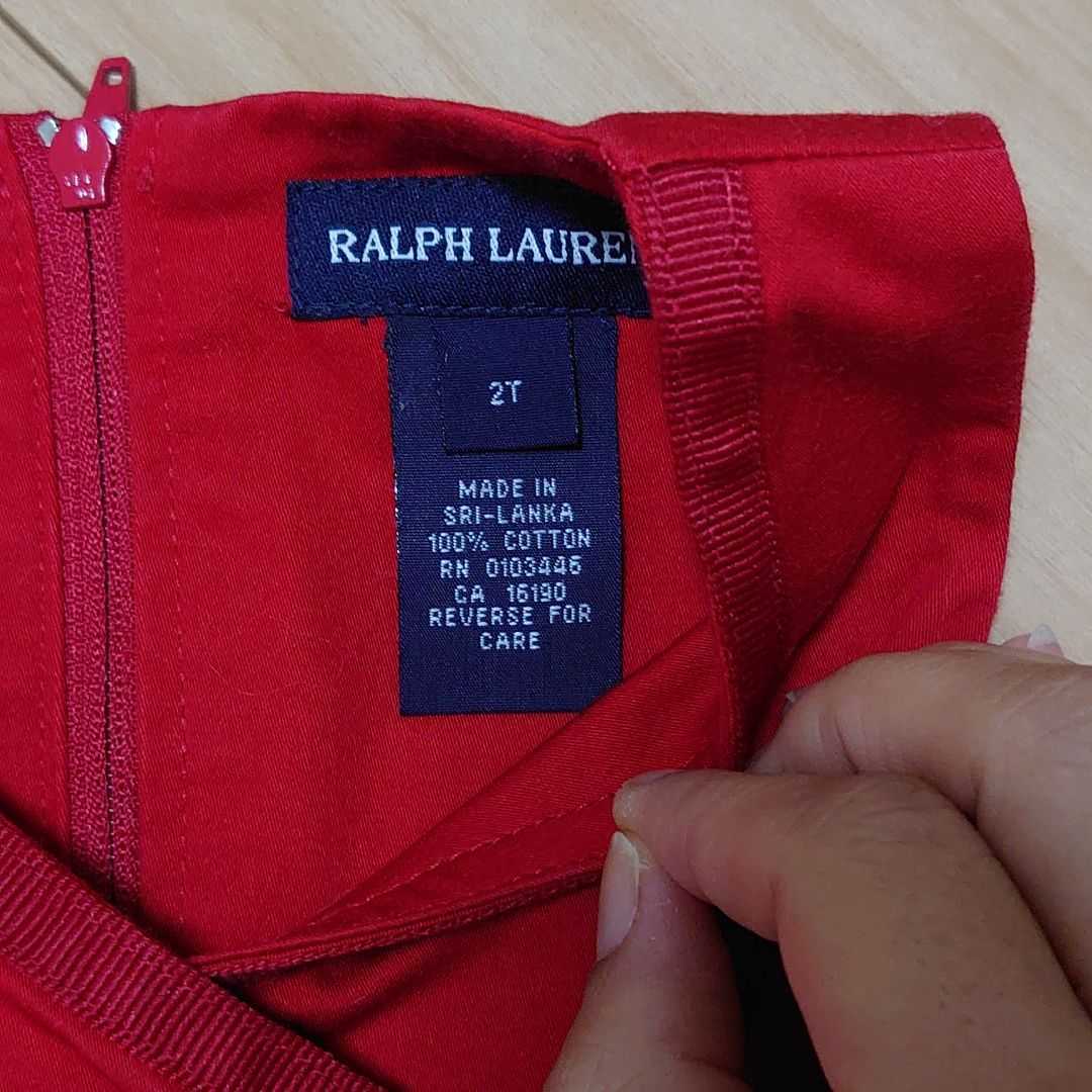 華やかな赤が目を引く、ラルフローレンの上品なワンピースです。